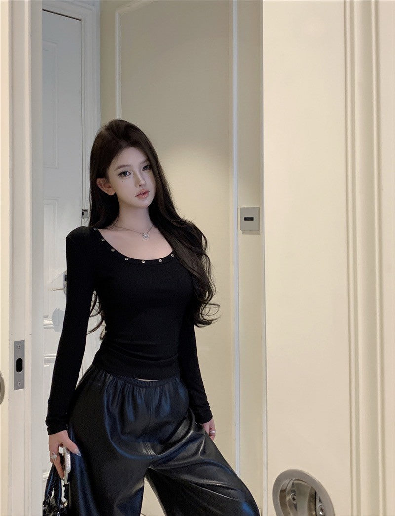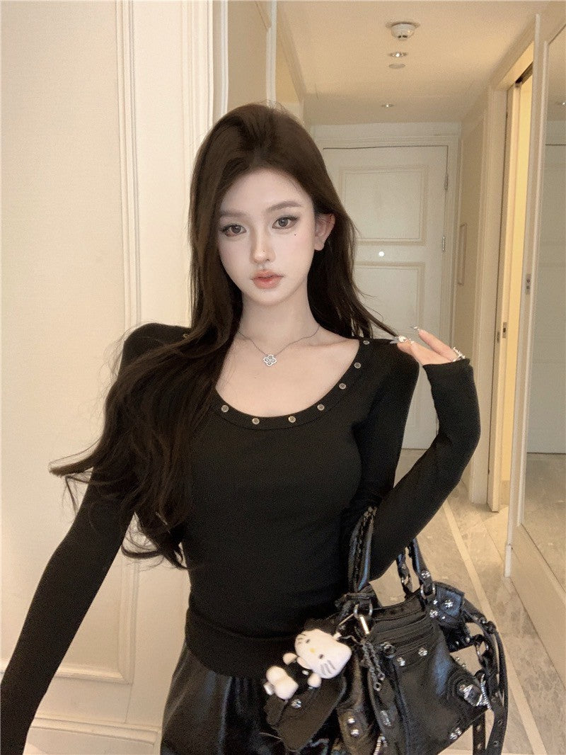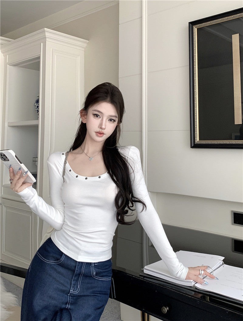 Na+ 基礎簡約圓釘U領上衣 軍綠/白/黑