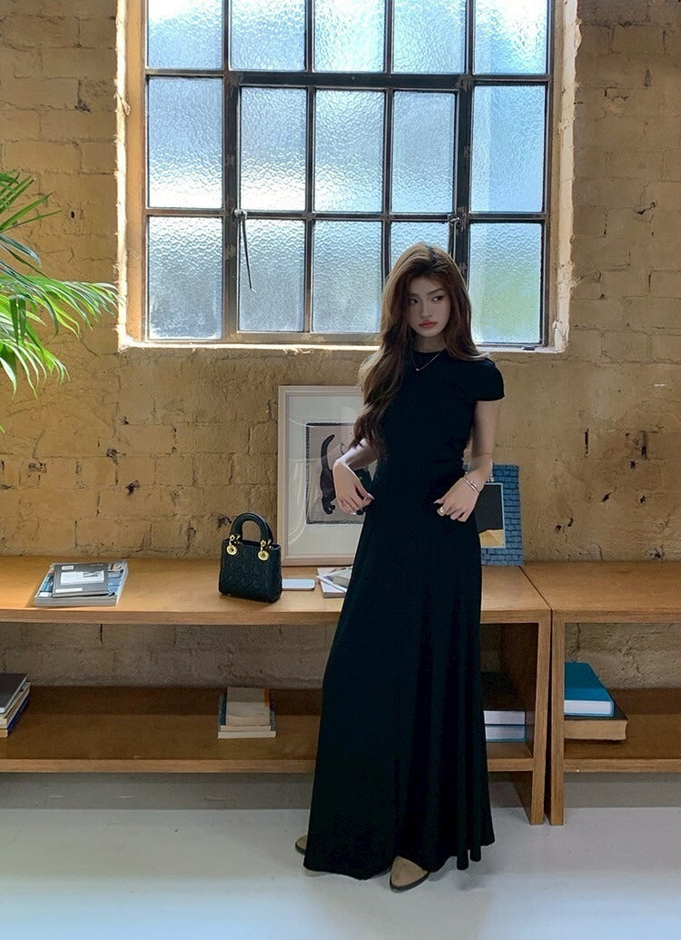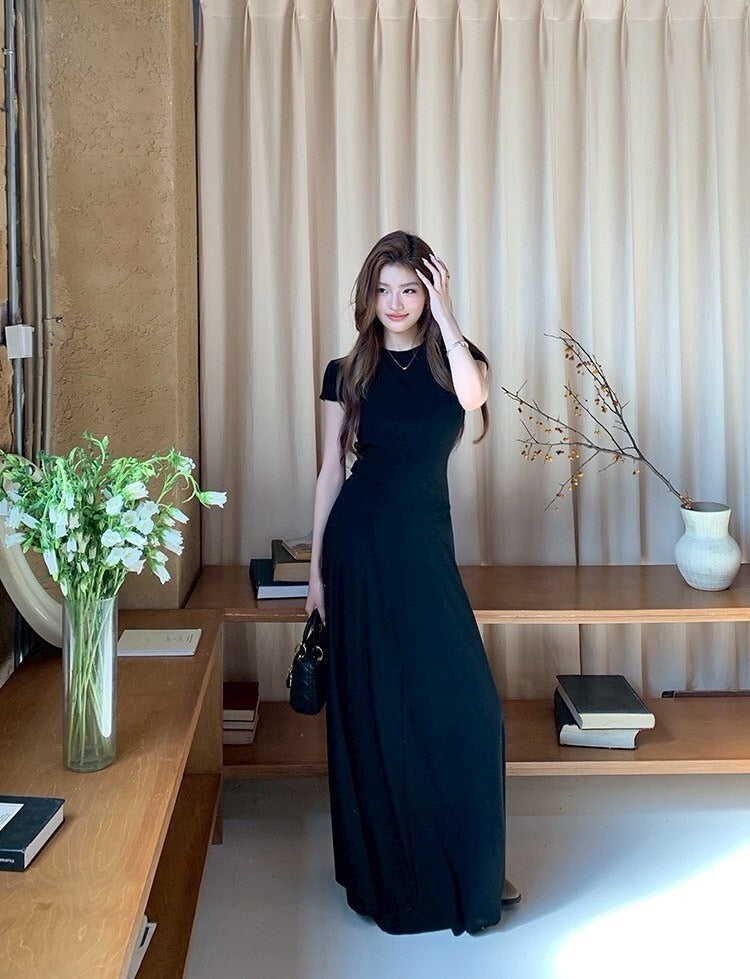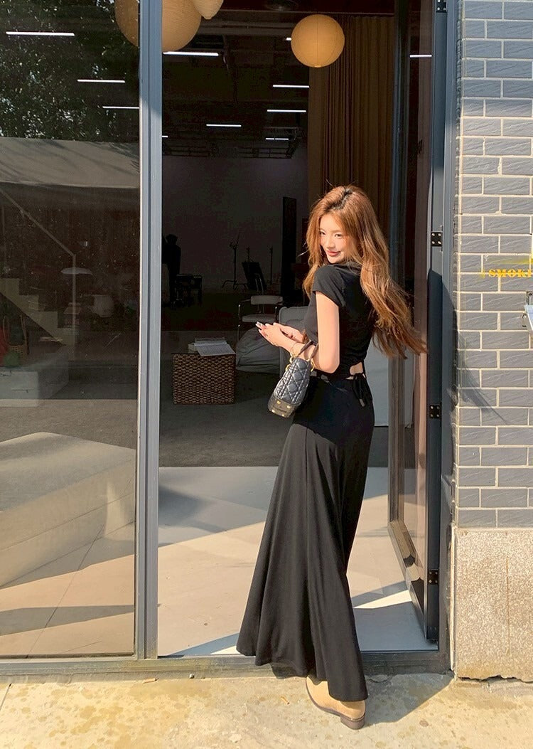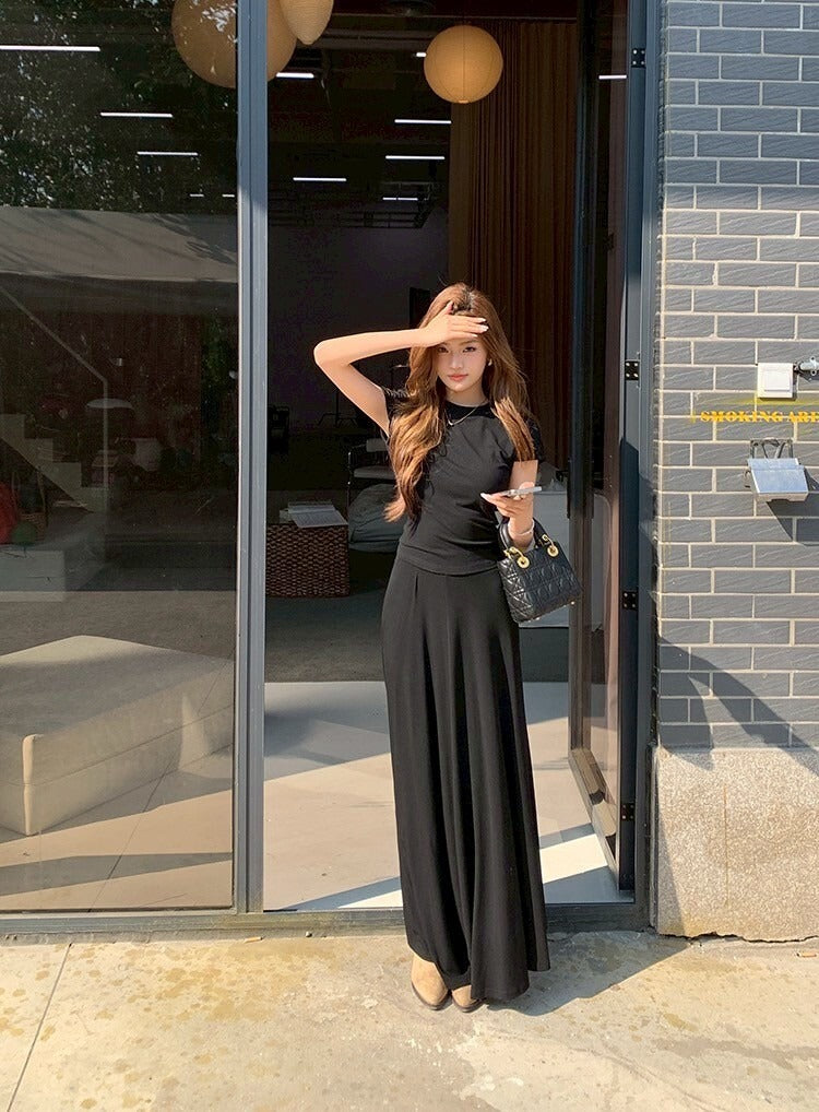 NA+ 基礎通勤 氣質圓領上衣半身裙套裝 黑