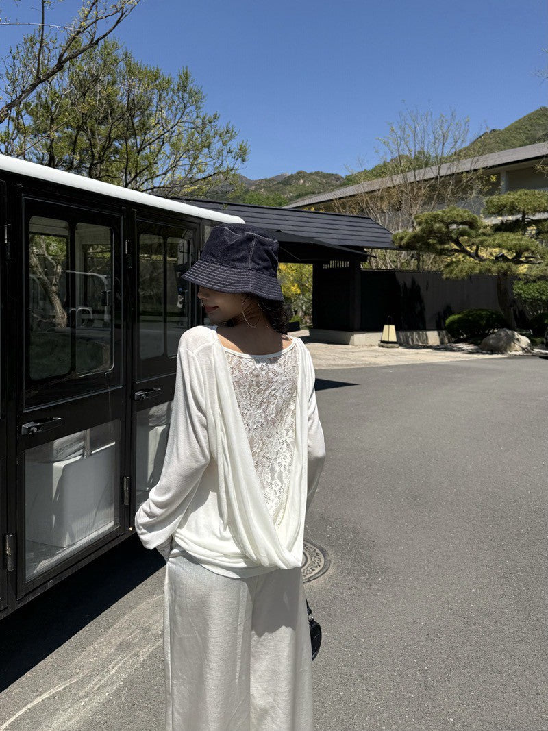 NA+ 大愛兩面穿 性感蕾絲拼面蘯感上衣 白/黑