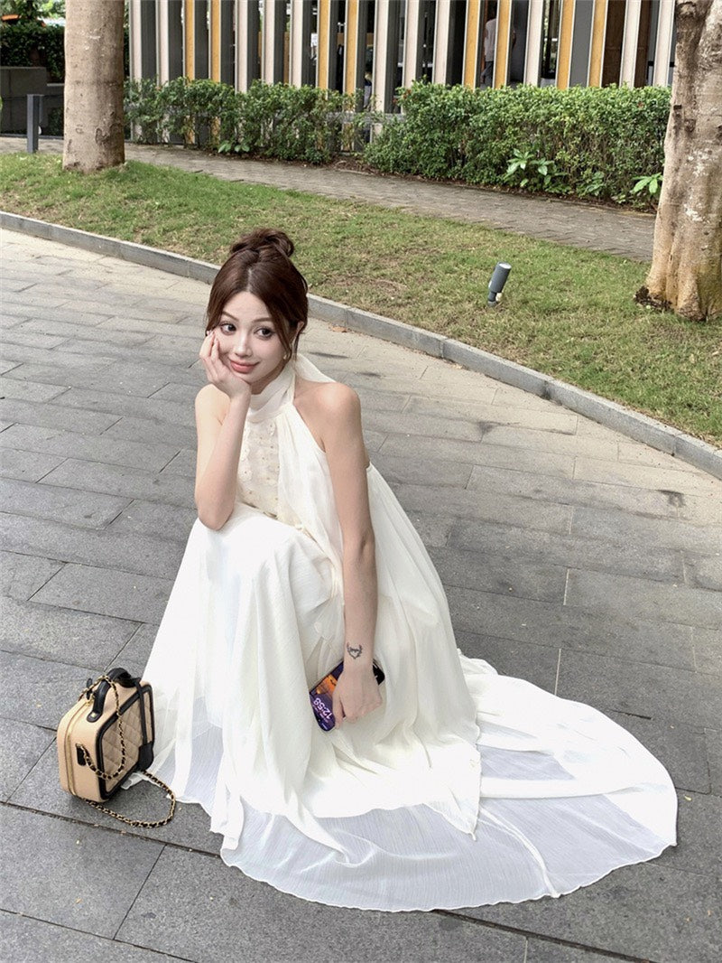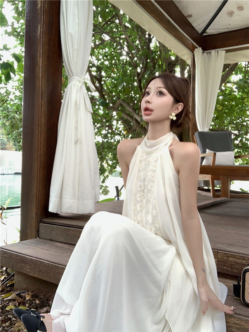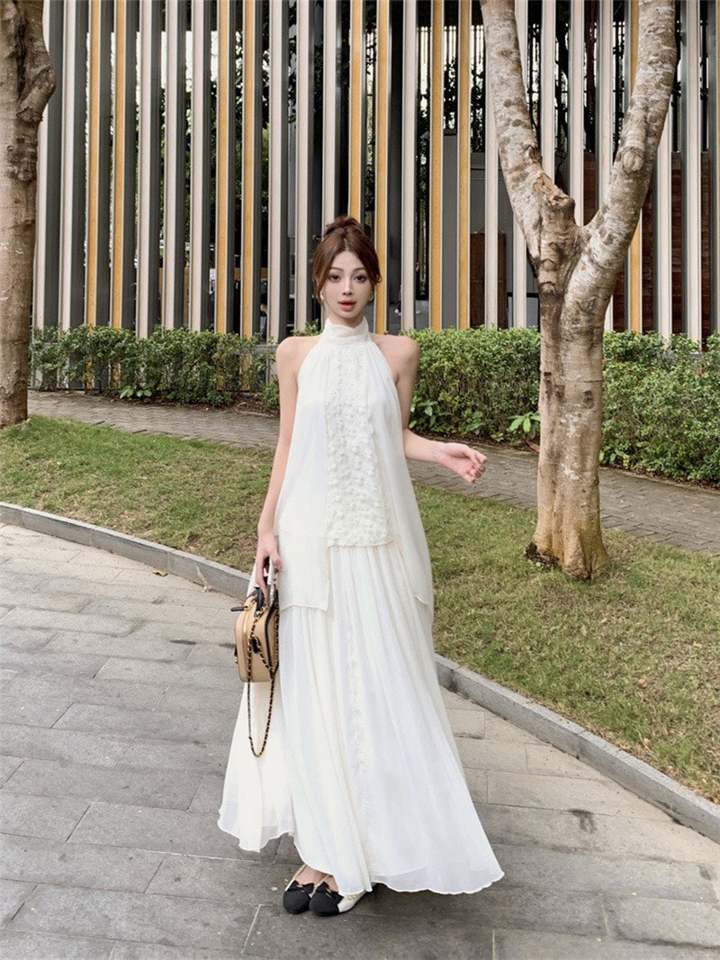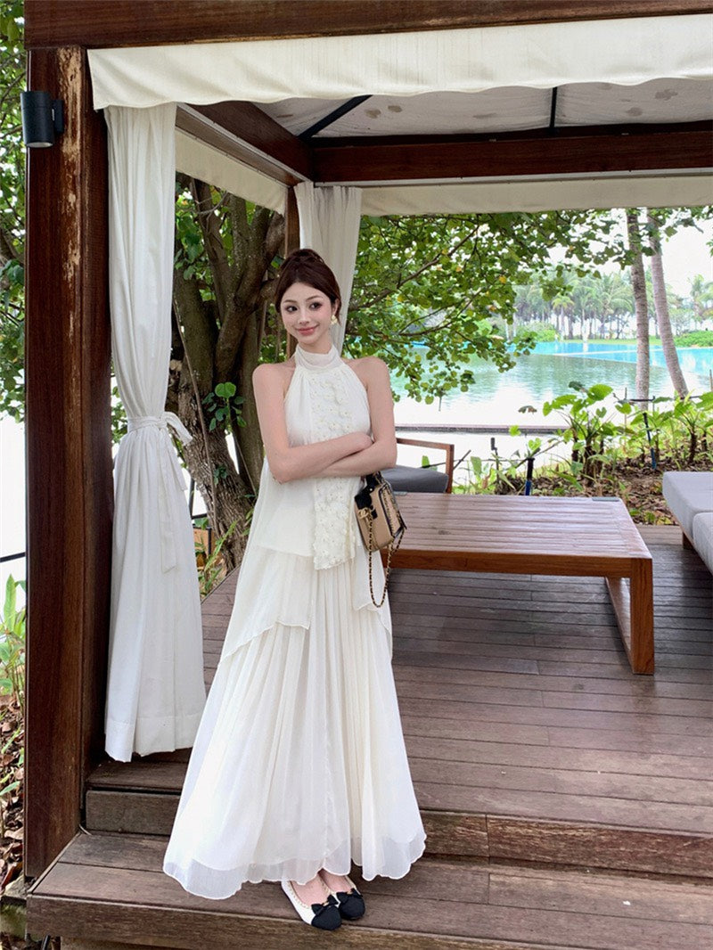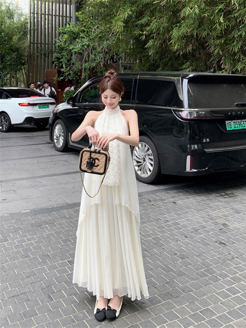 NA+ 富養千金 花朵飄感背心/米杏半身裙