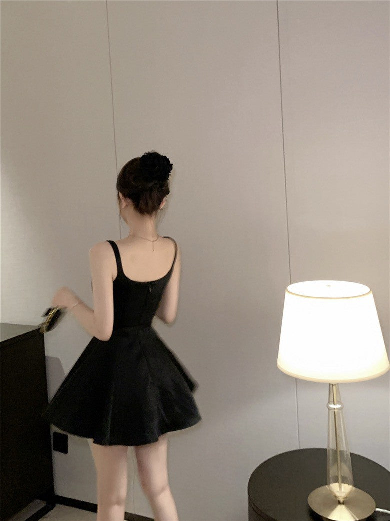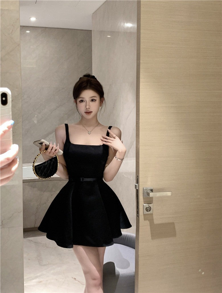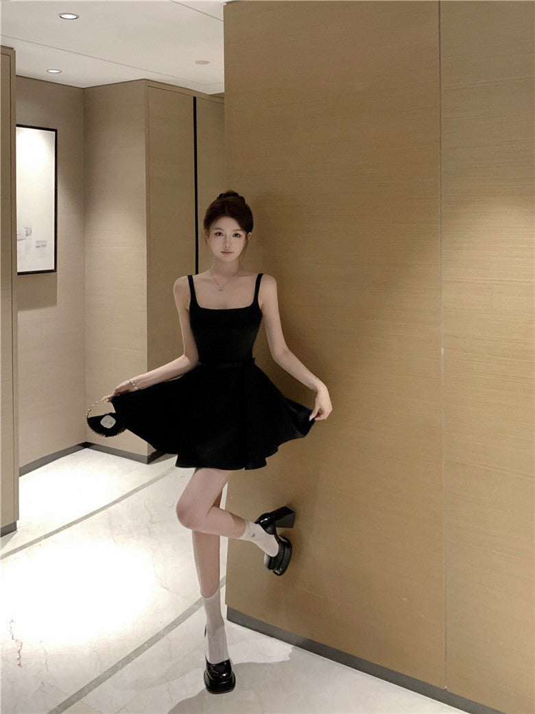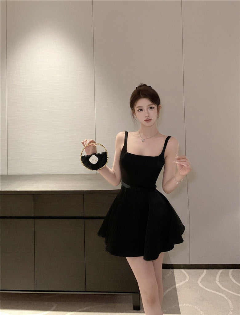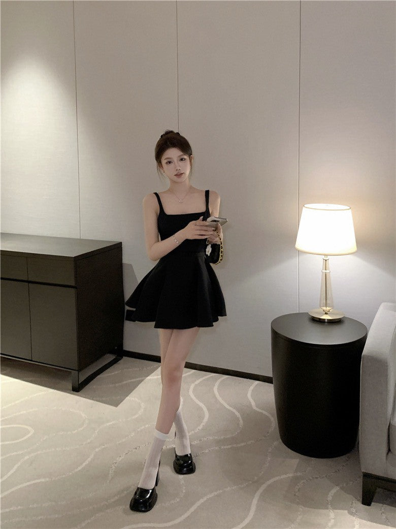 NA+ 小芭蕾 高級名媛氣質方領洋裝 黑色