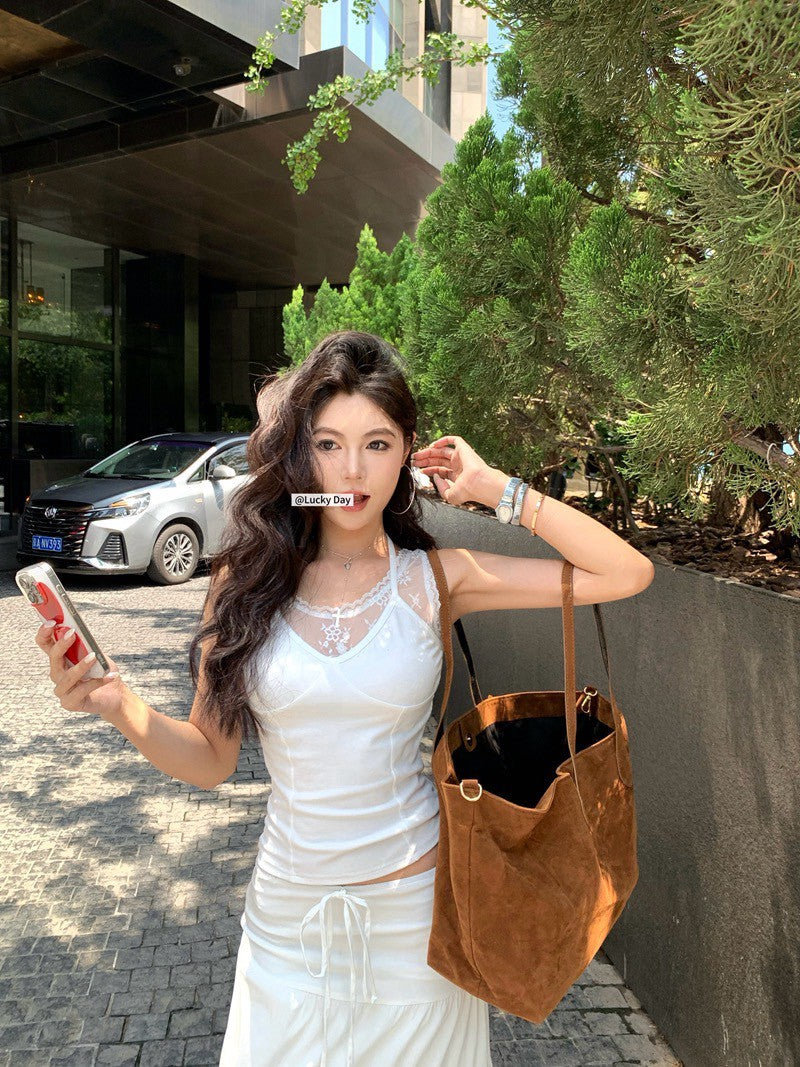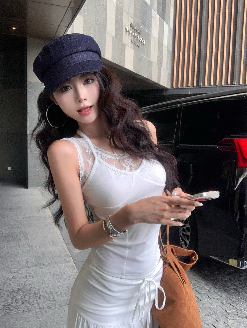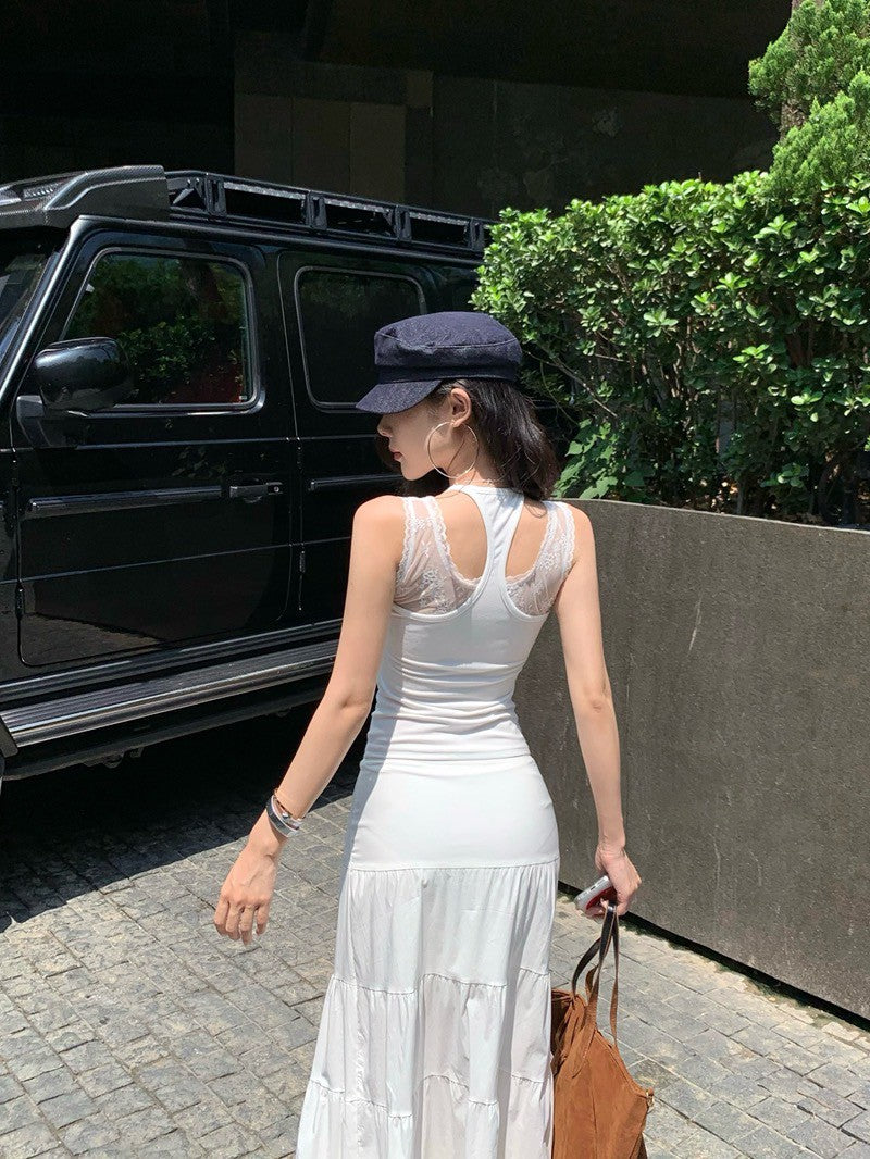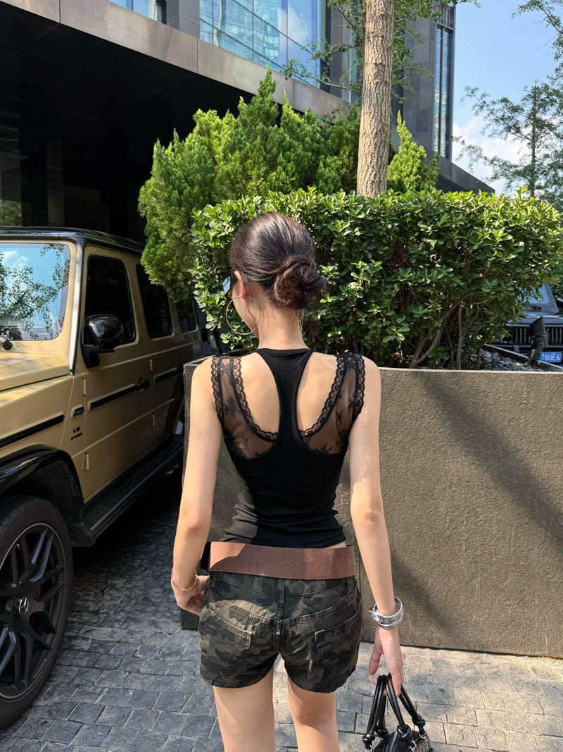 NA+ 幸運女孩修身蕾絲拼接row風背心 白/黑
