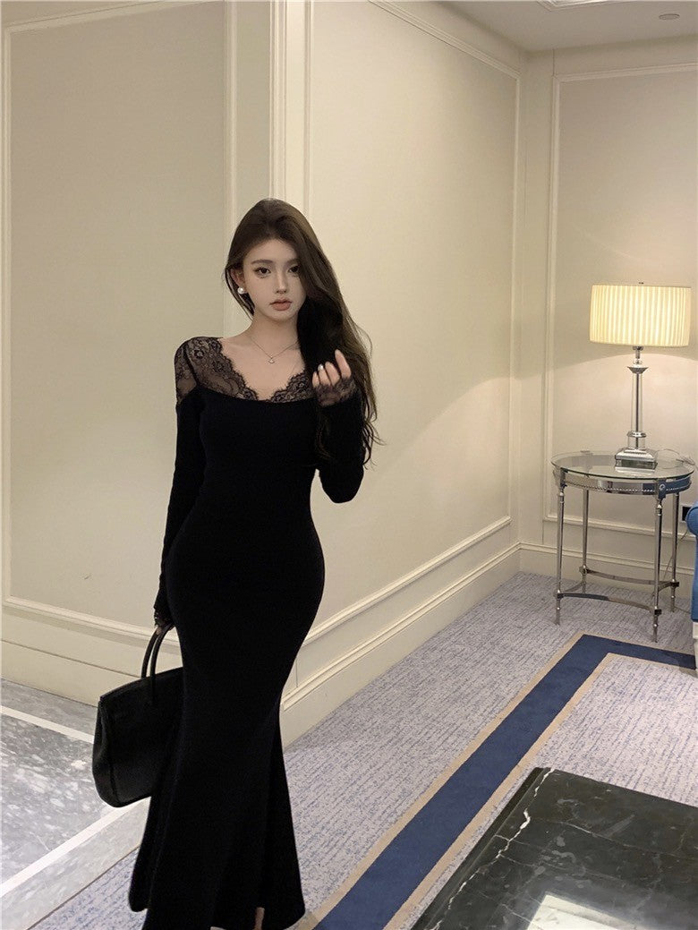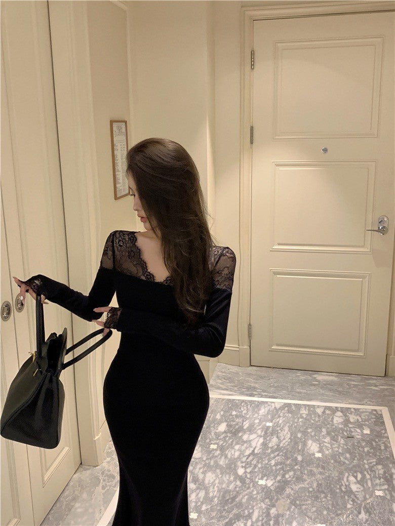 ''Na+''御姐白月光2.0 修身長款連身裙版 黑