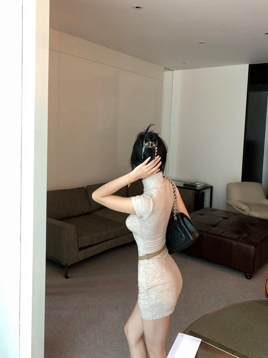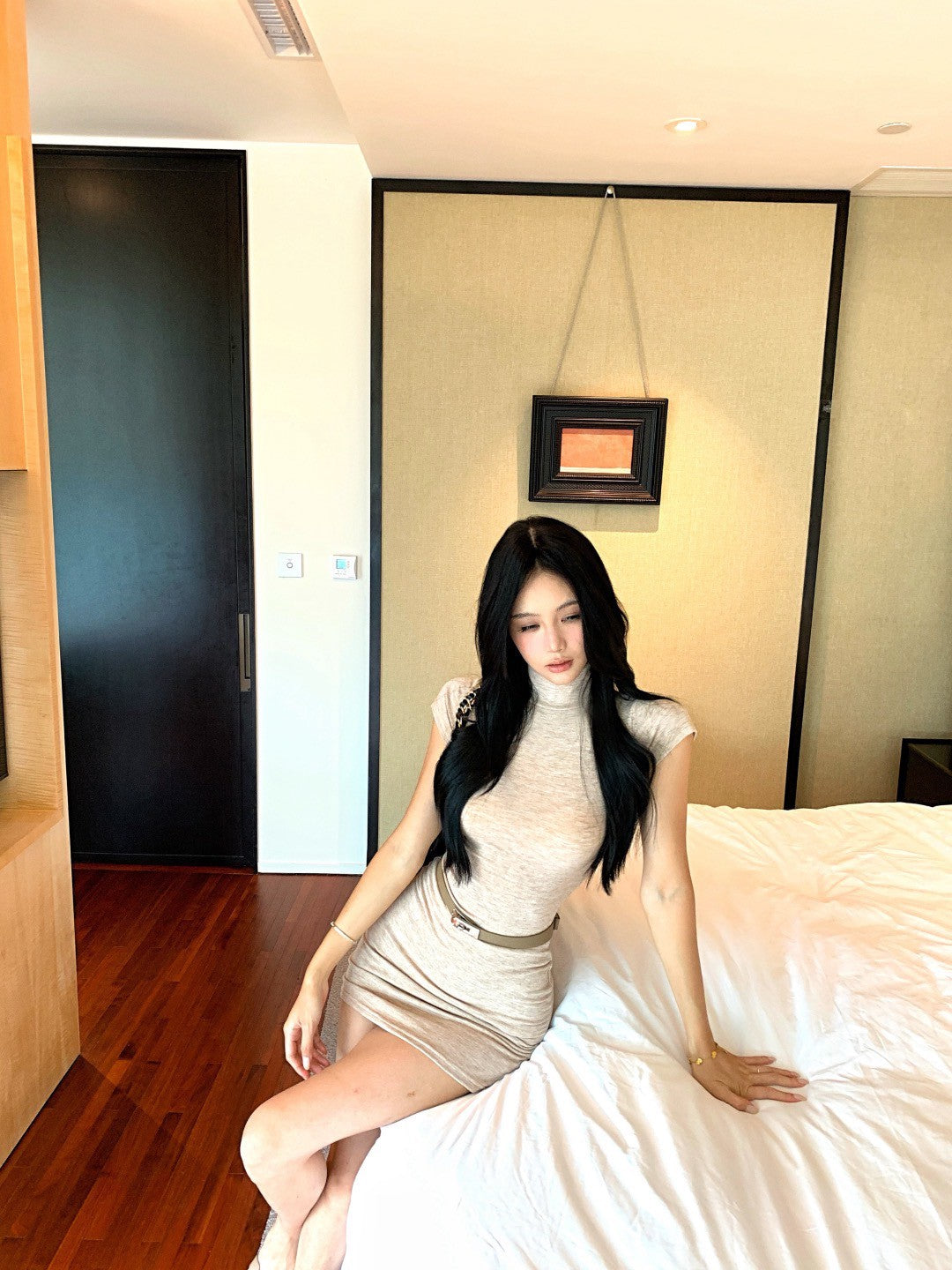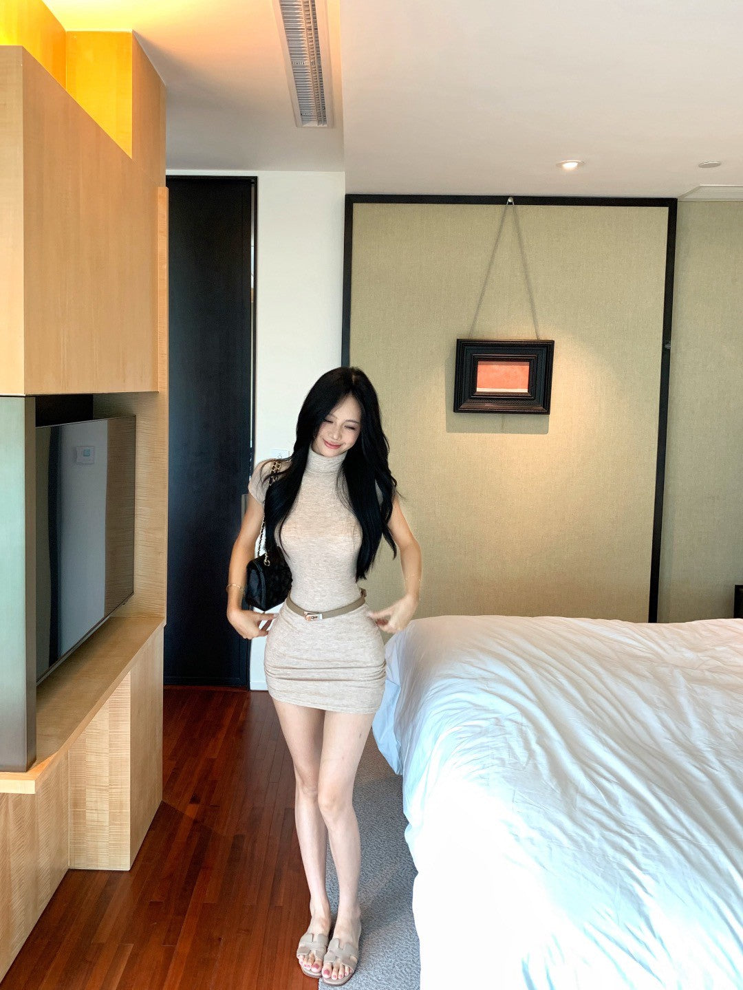 NA+ 御姐貼身燕麥色高領打底連身裙