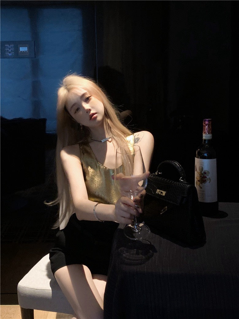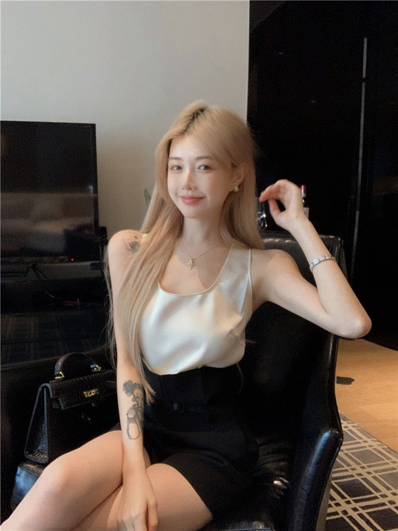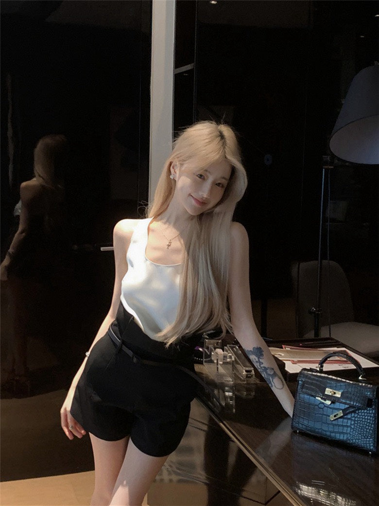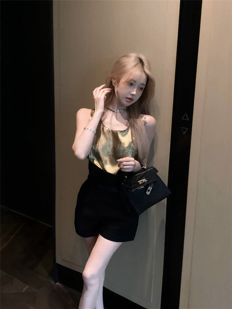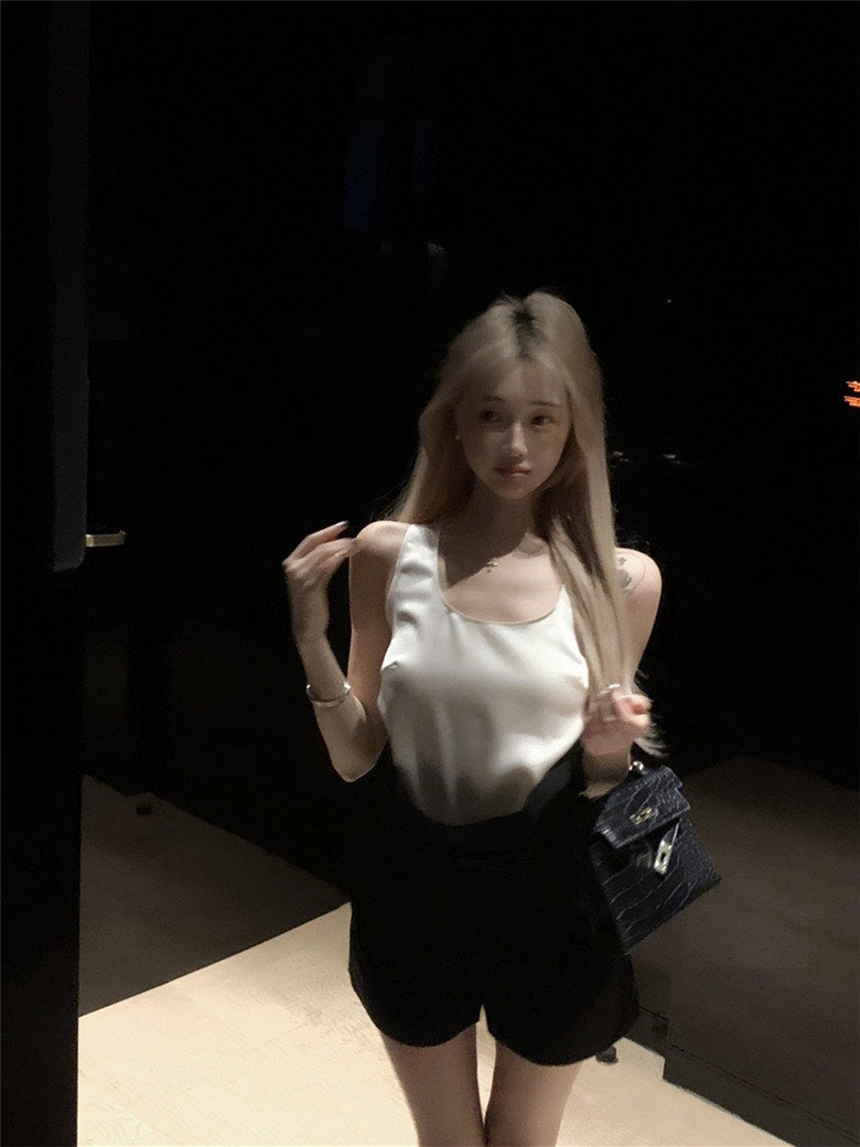 NA+ 復古時髦U領背心2色/極高腰花苞褲