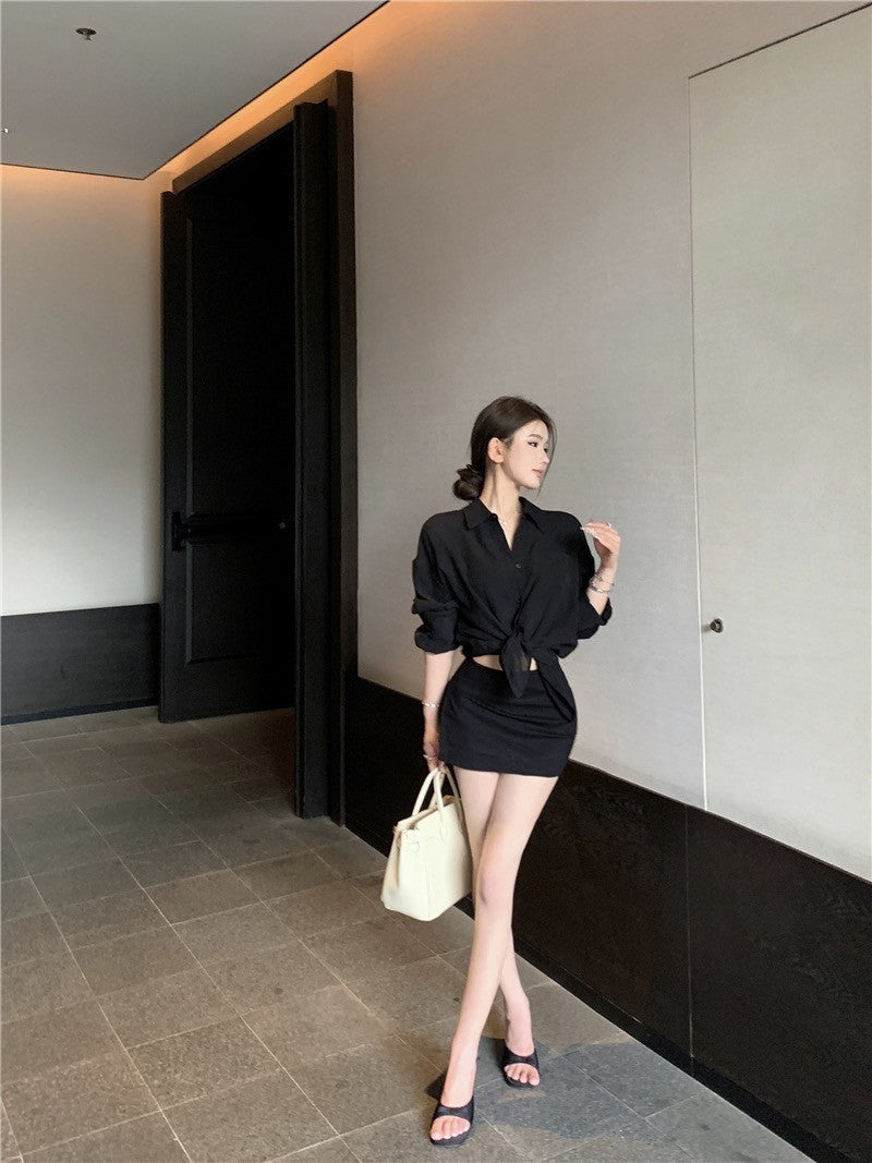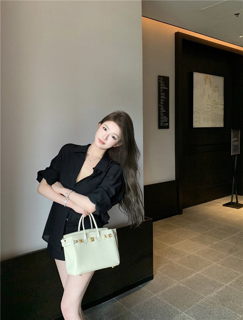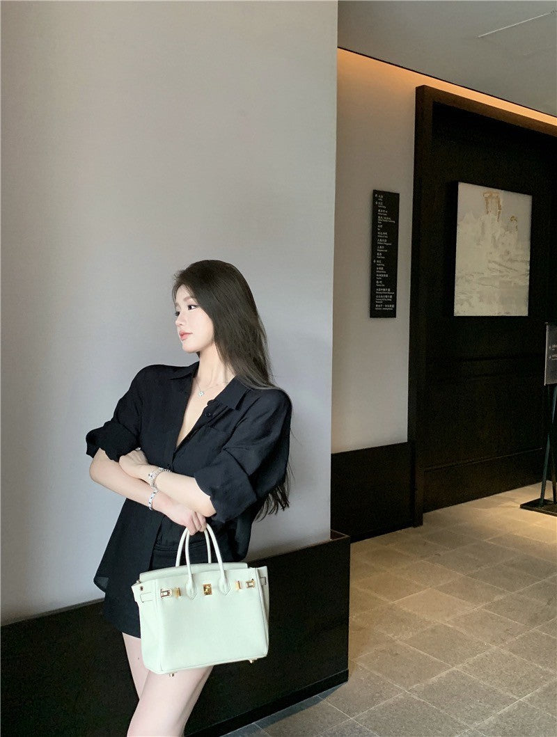 "Na+"悠然慵懶 百搭廓形口袋襯衫 黑