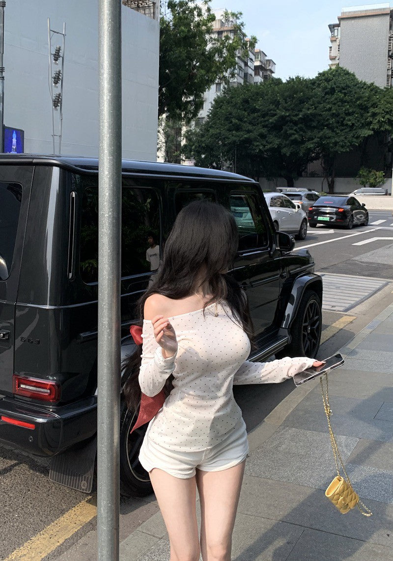 NA+ 愛心波點美感蝴蝶結綁帶上衣