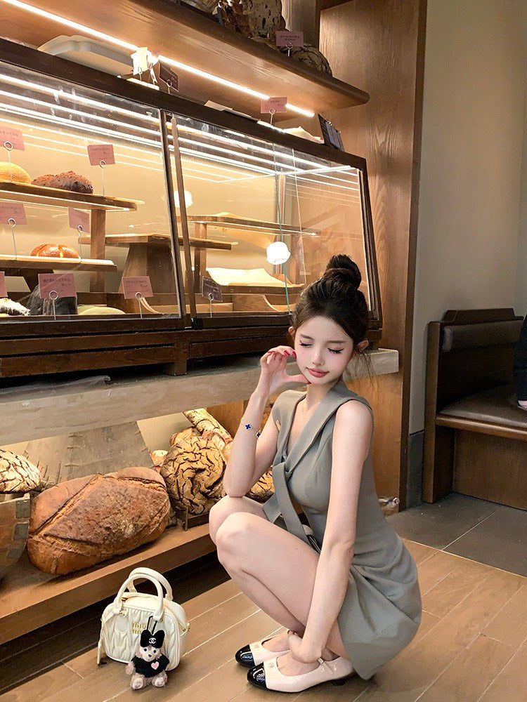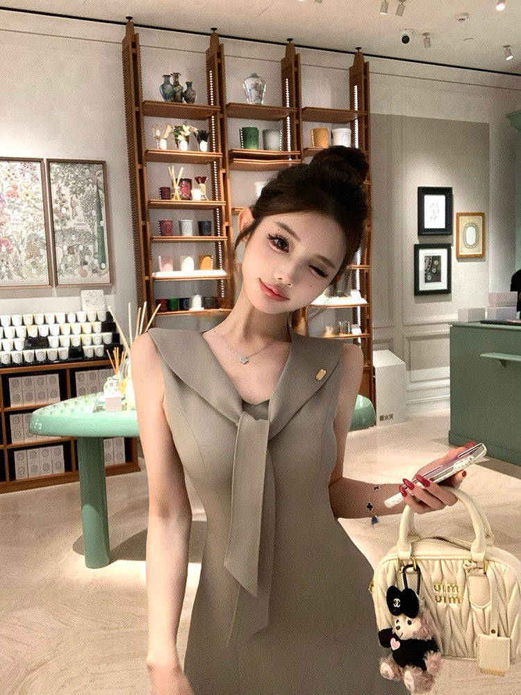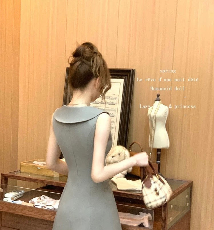 NA+ 愛神見習生 海軍領高定修身連身裙 灰