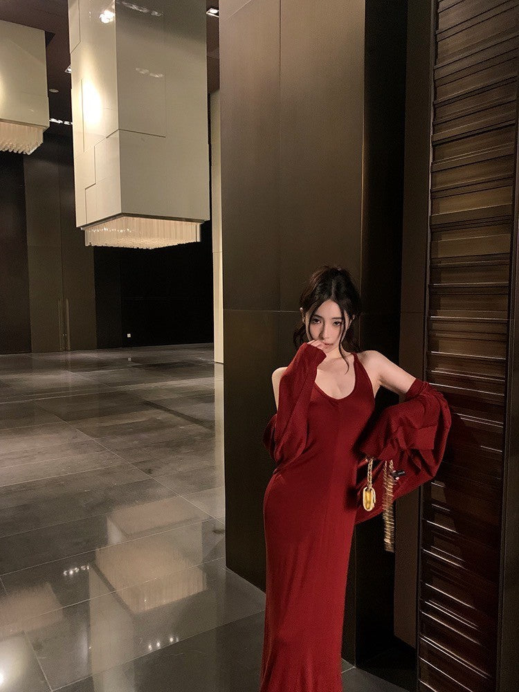 ''Na+''搖曳生姿 顯白過年紅收腰背心裙 蝙蝠袖針織外套