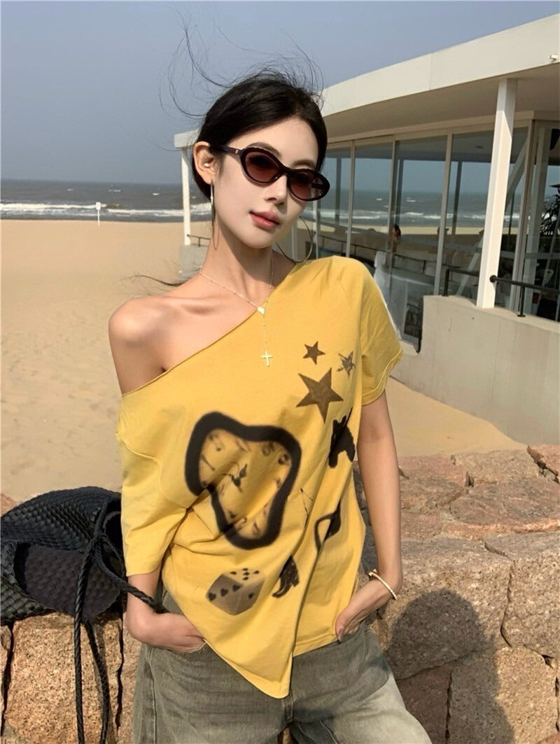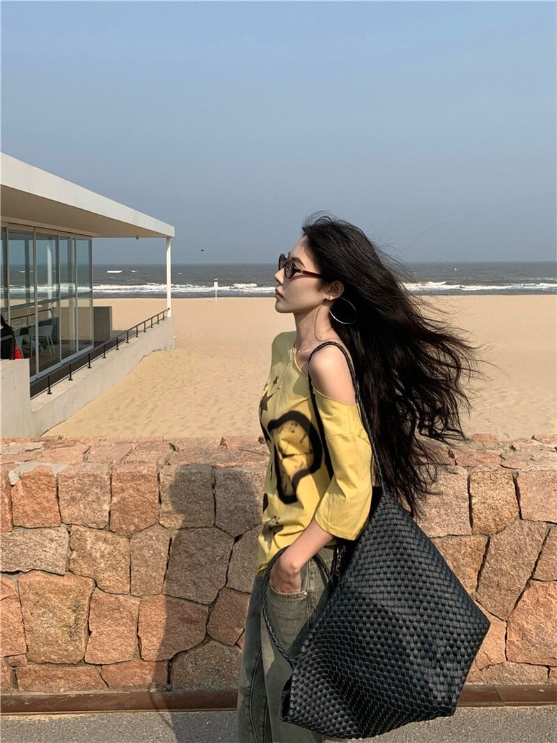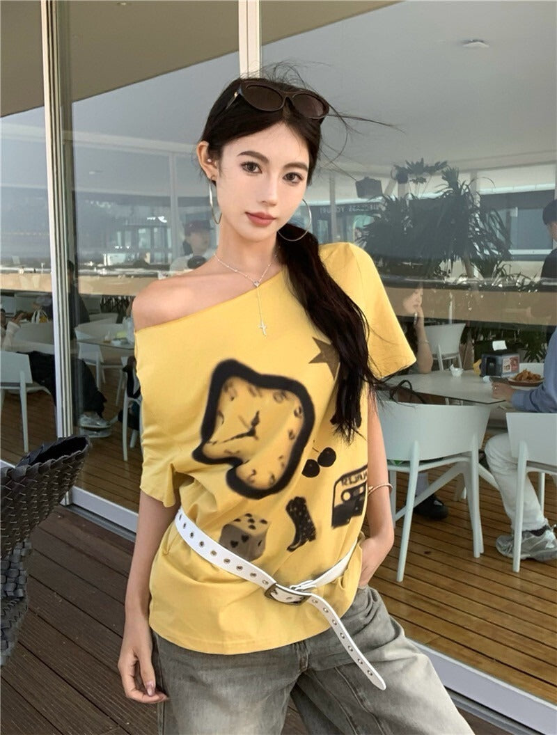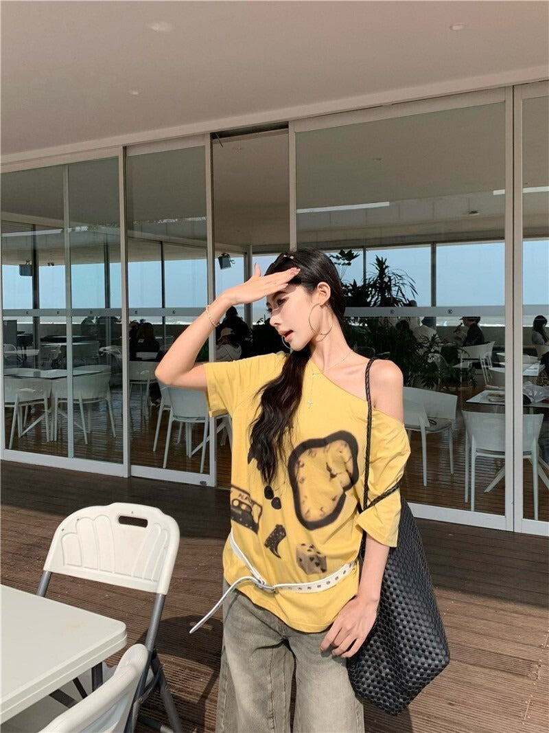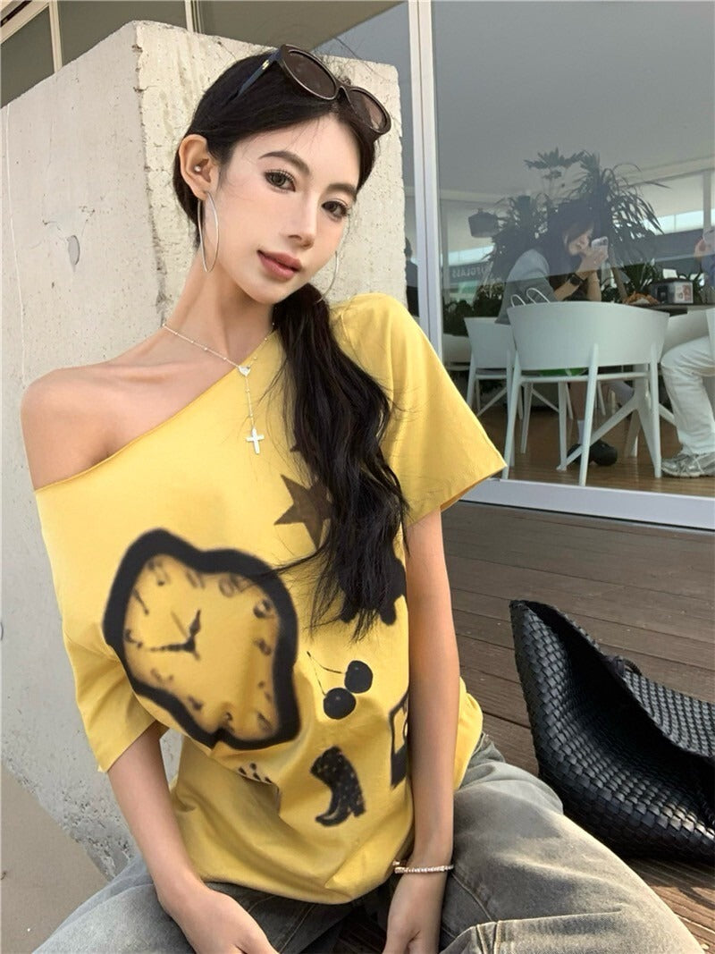 NA+ 時髦博物館 抽象畫印花黃色上衣
