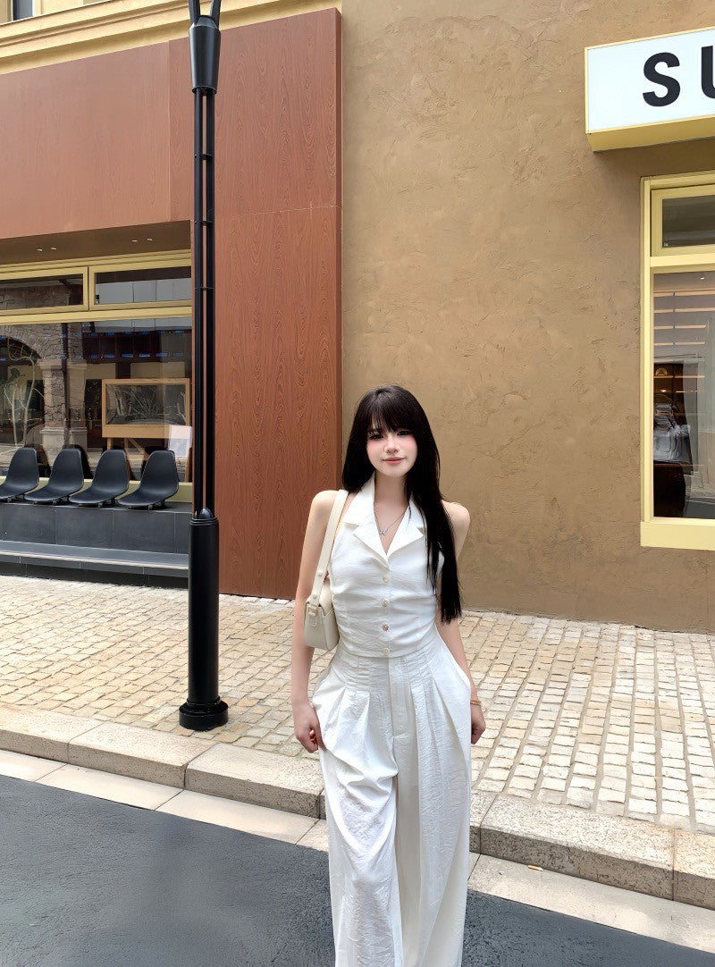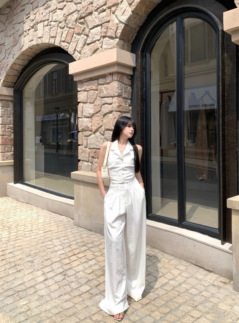 Na+ 時髦老錢 俐落剪裁V領馬甲 高腰直筒褲