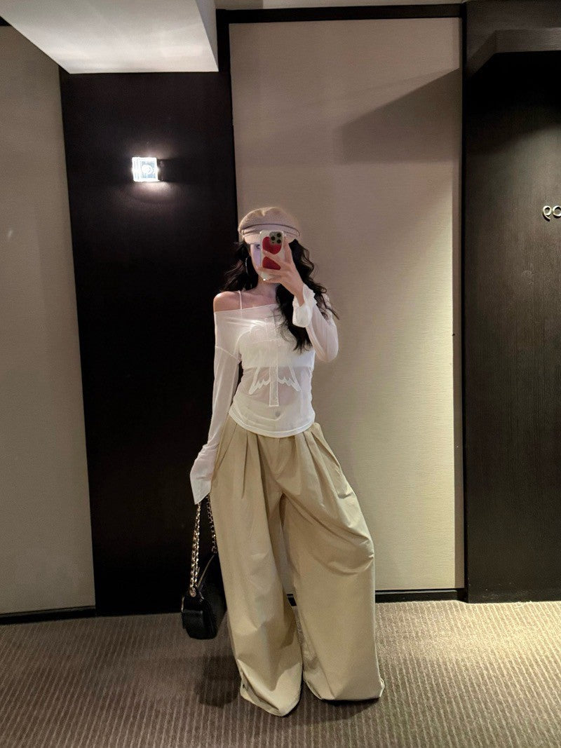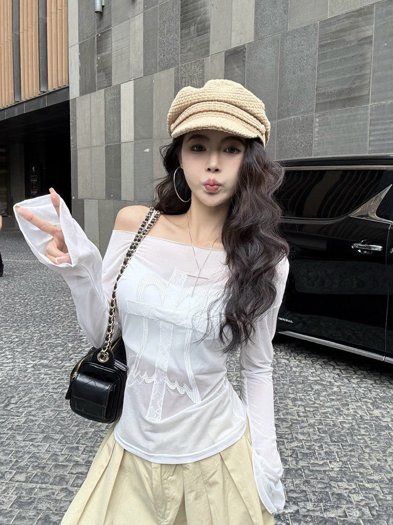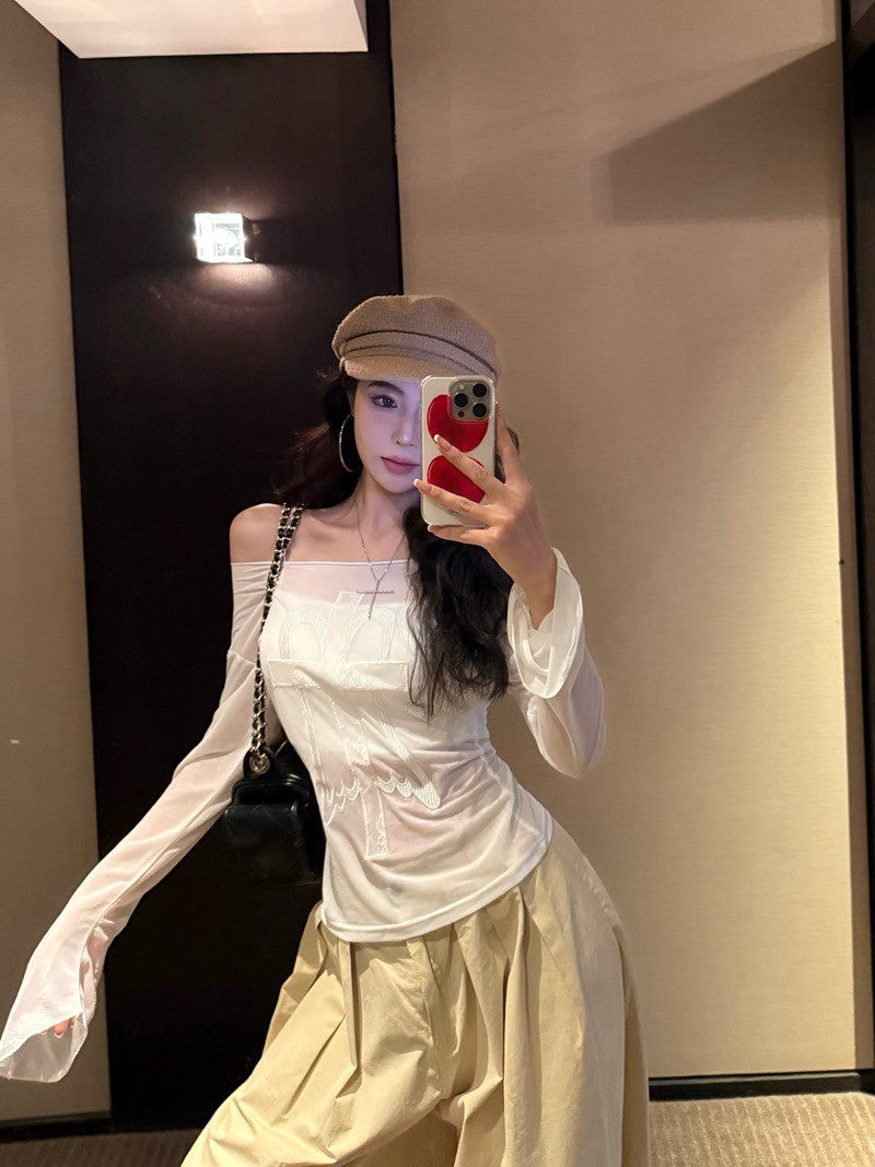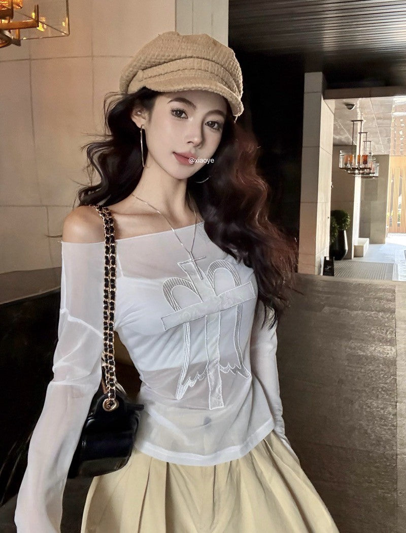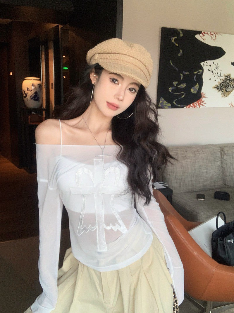 NA+ 最愛疊穿透紗棉刺繡花上衣 白