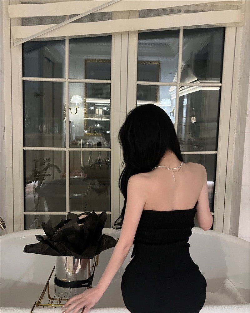 NA+ 法紗荷葉鈕扣抹胸 黑