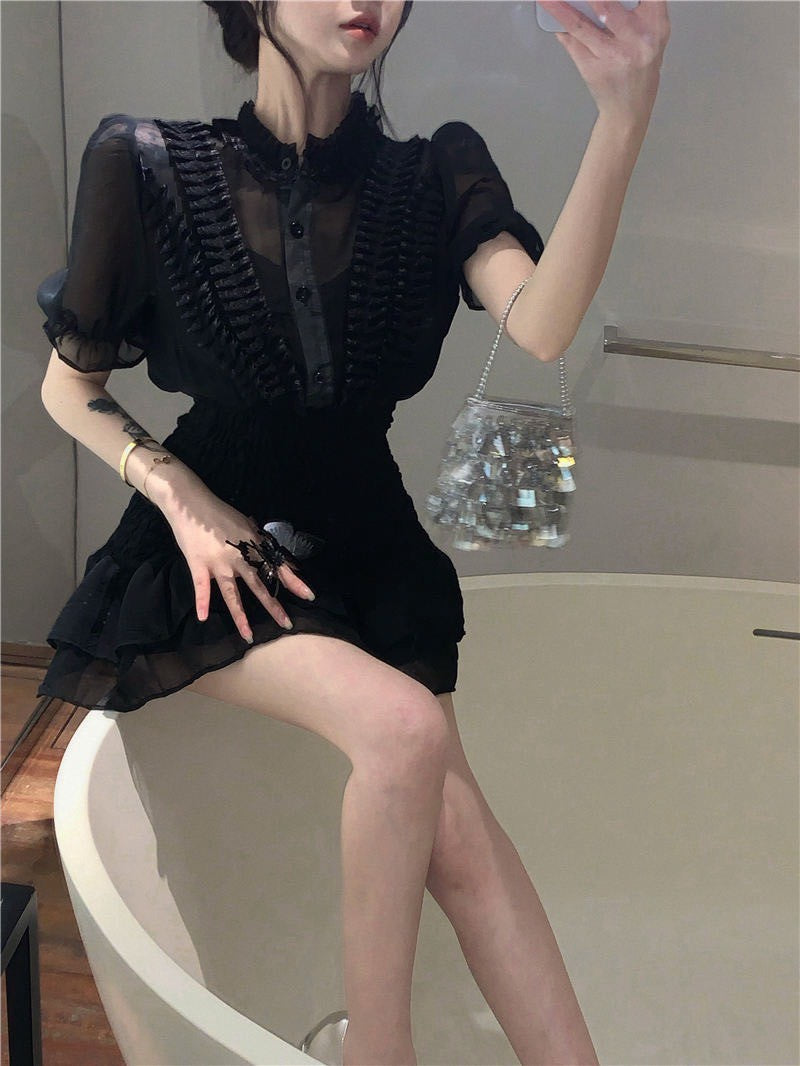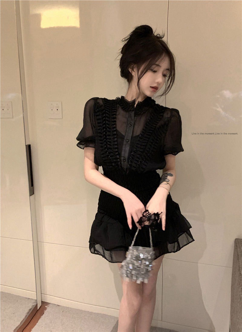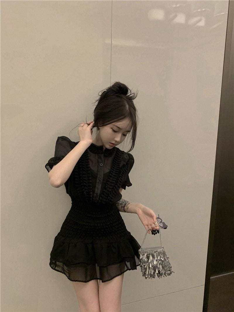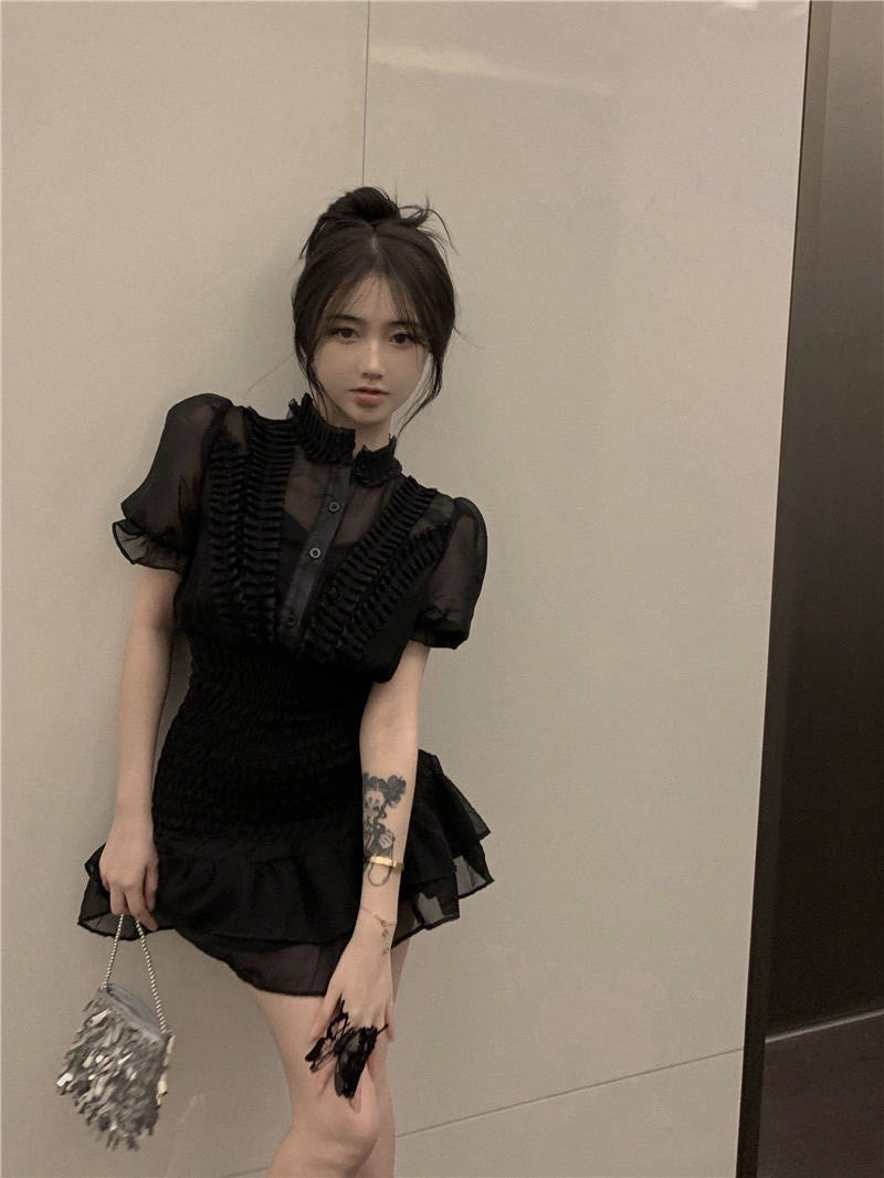 NA+ 清透冷茶熱銷再版娃娃領收腰連身裙 黑