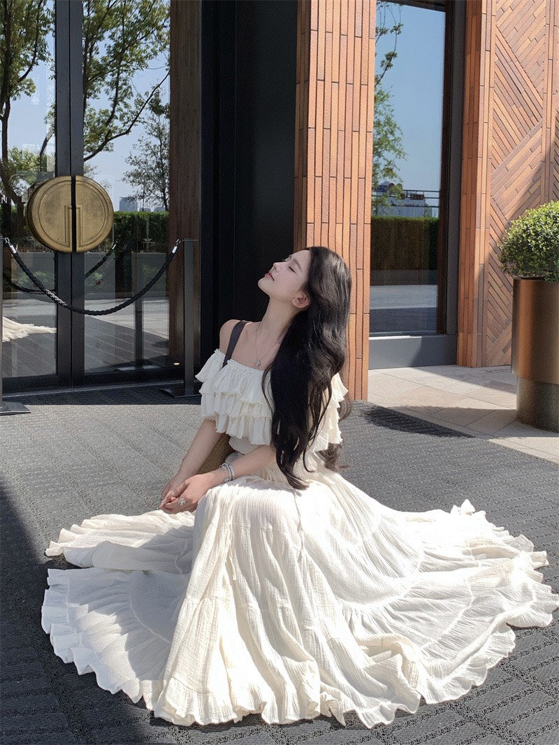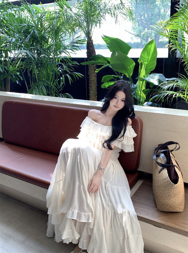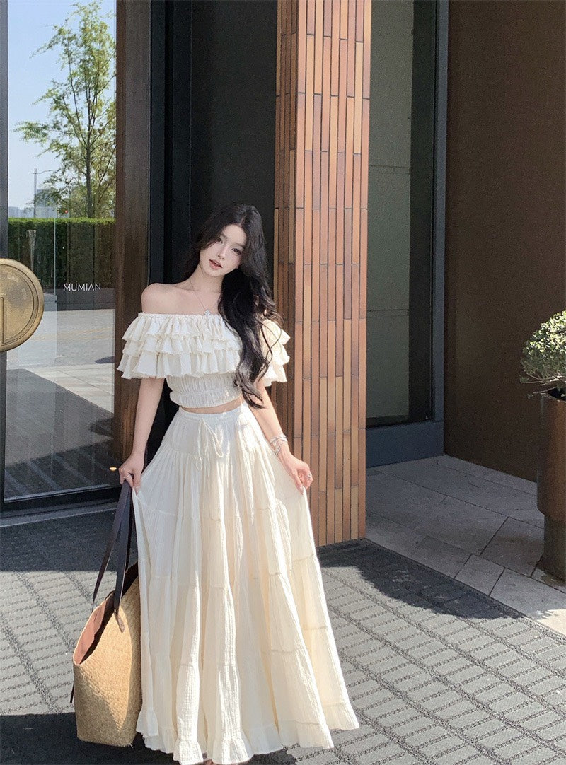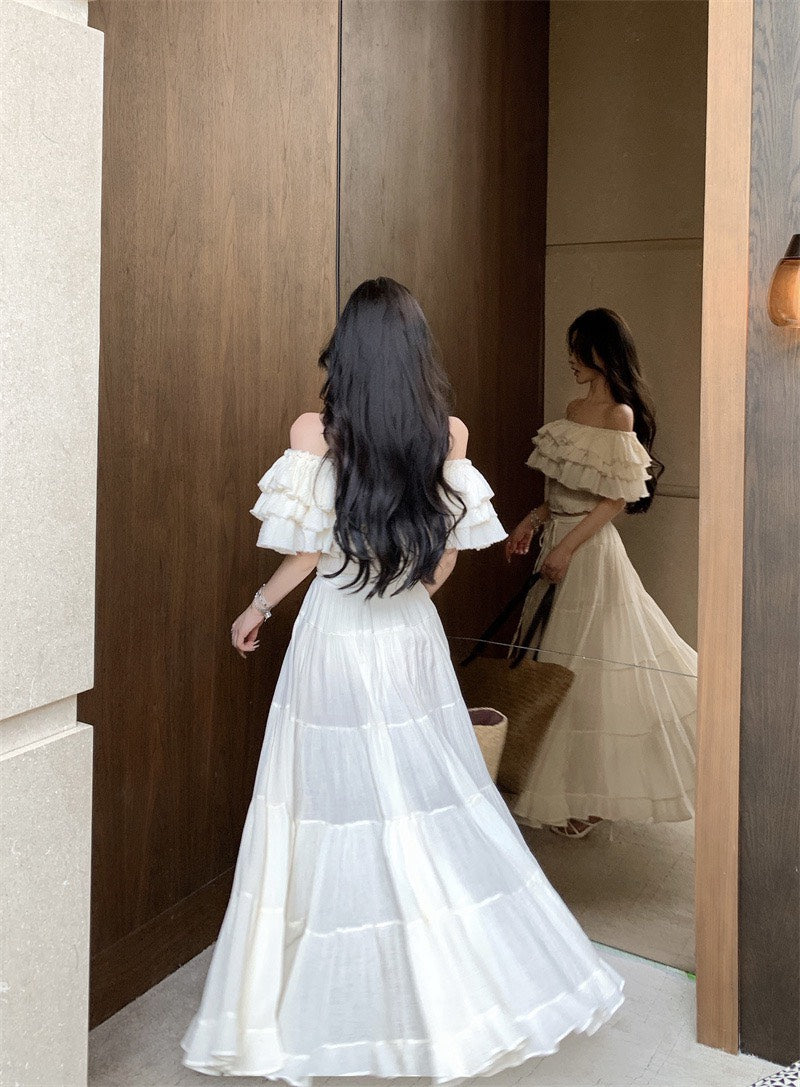 NA+ 清邁渡假 中古娃娃宮廷一字領上衣/大裙擺半身裙