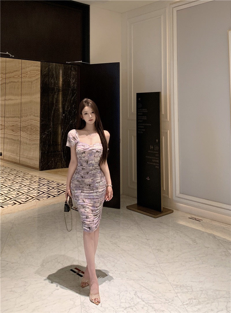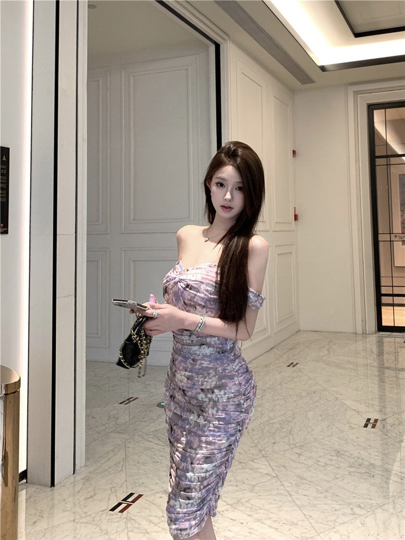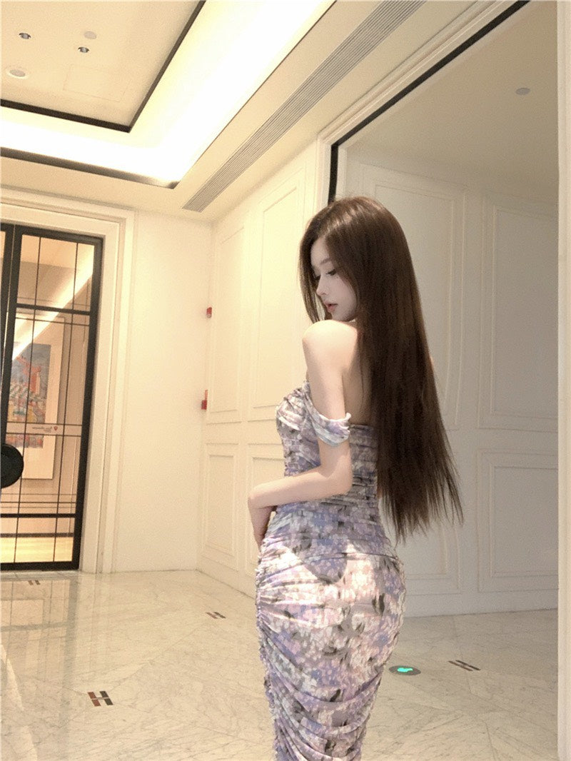 NA+ 漫野碎花極致純慾V領暈染連身裙 紫花