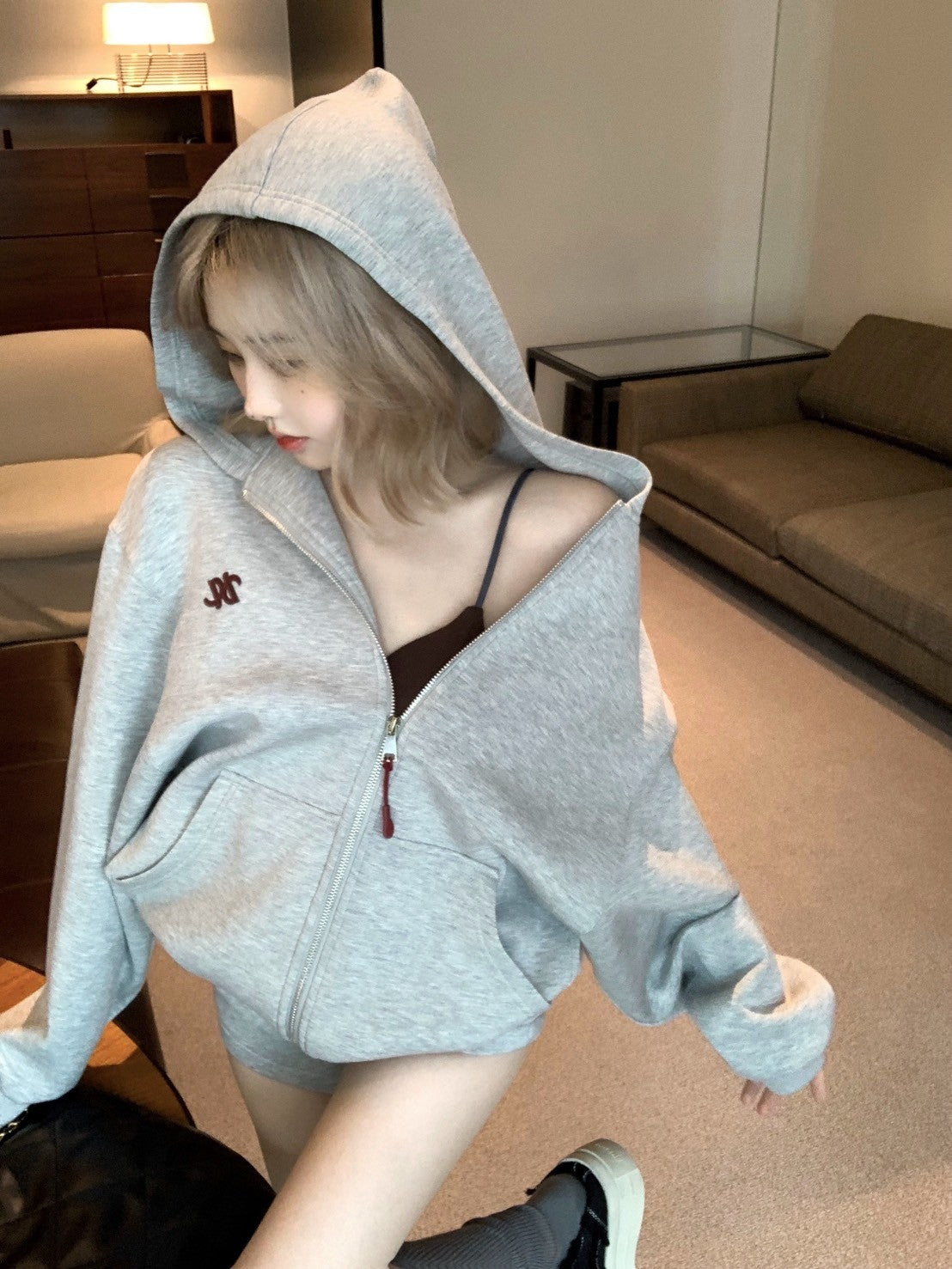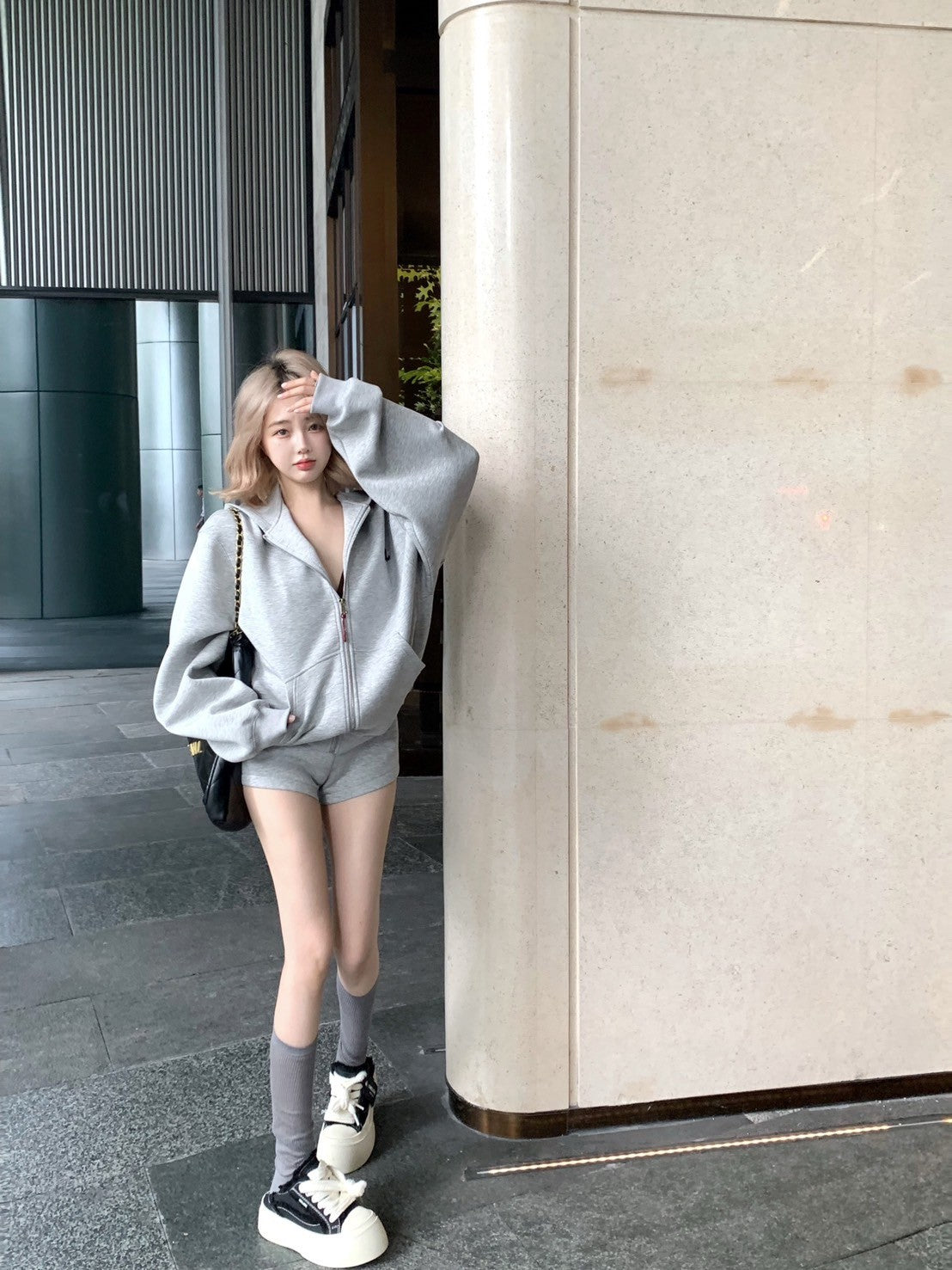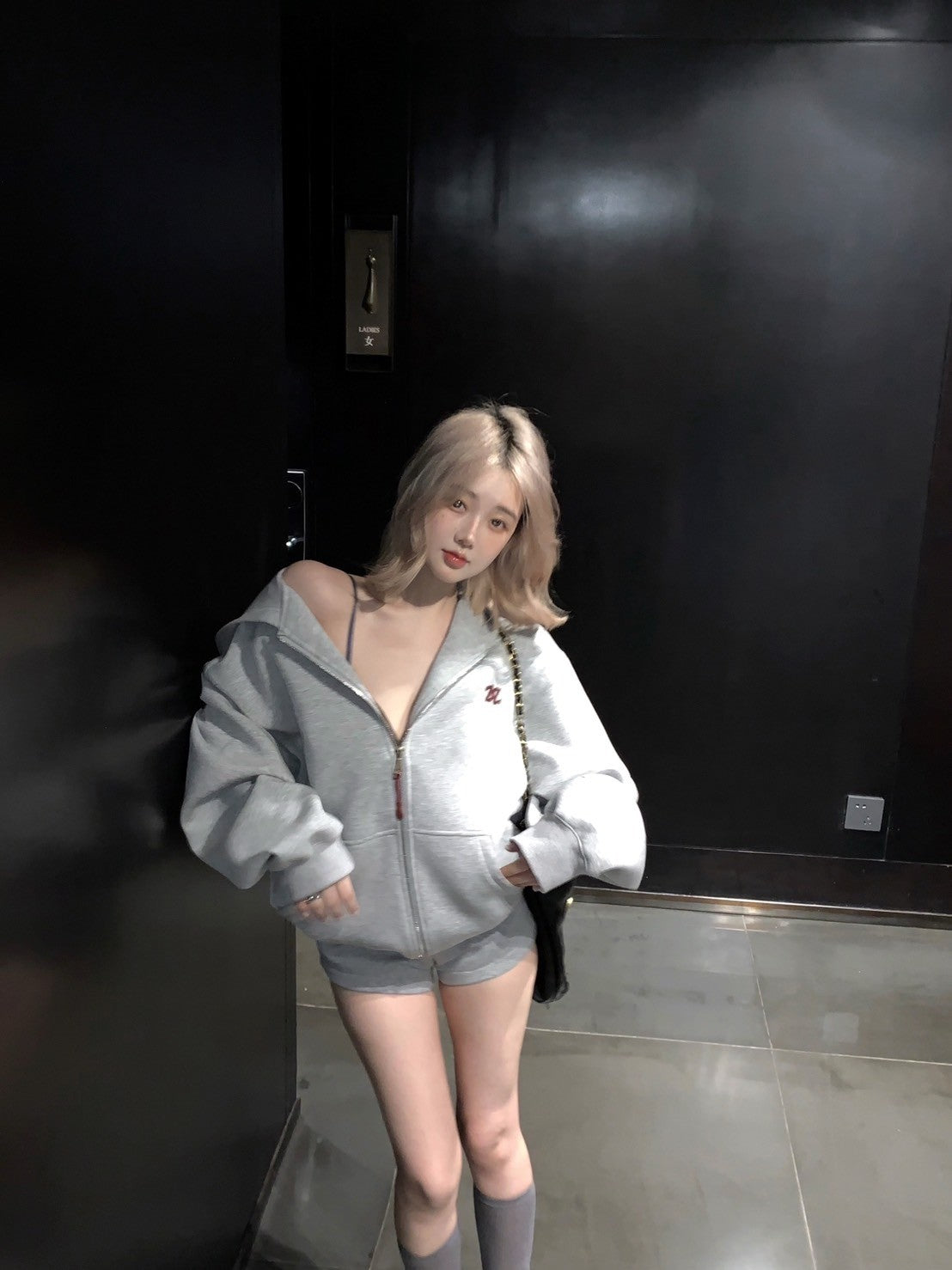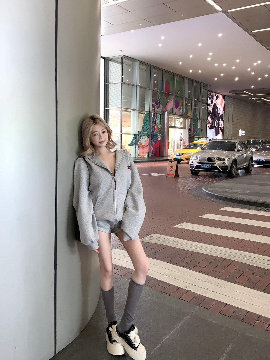"Na+"澳洲留學生 高磅休閒刺繡外套 修身短款 灰
