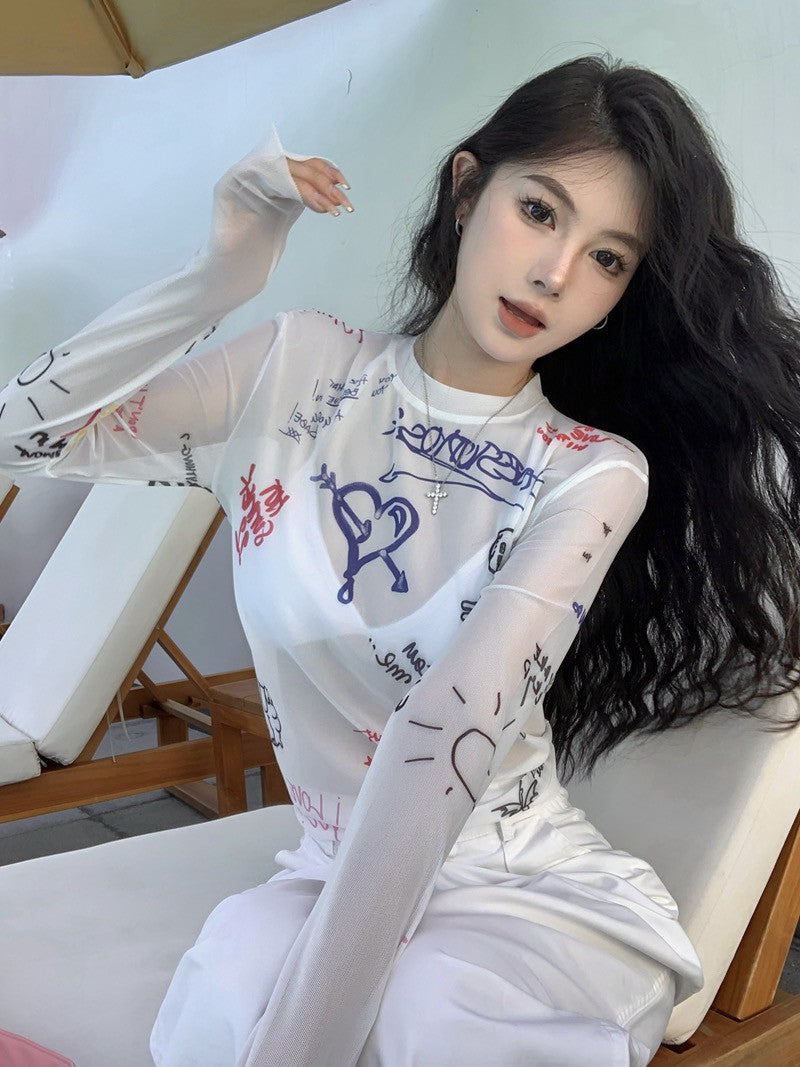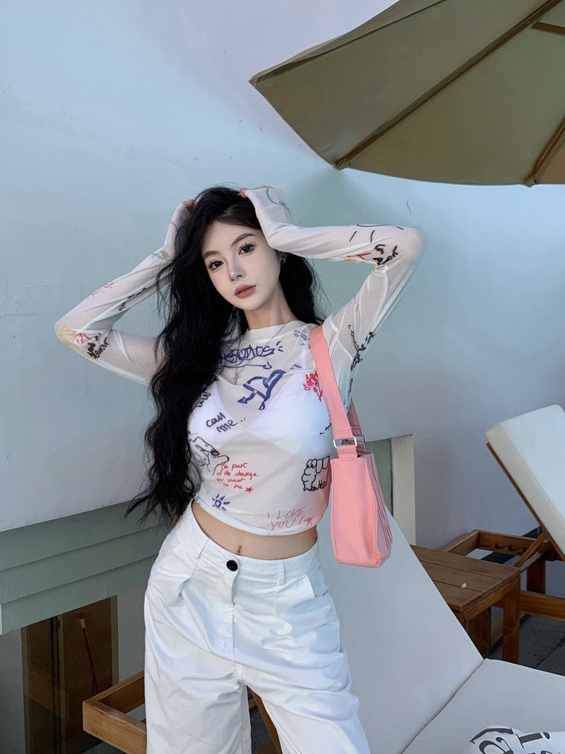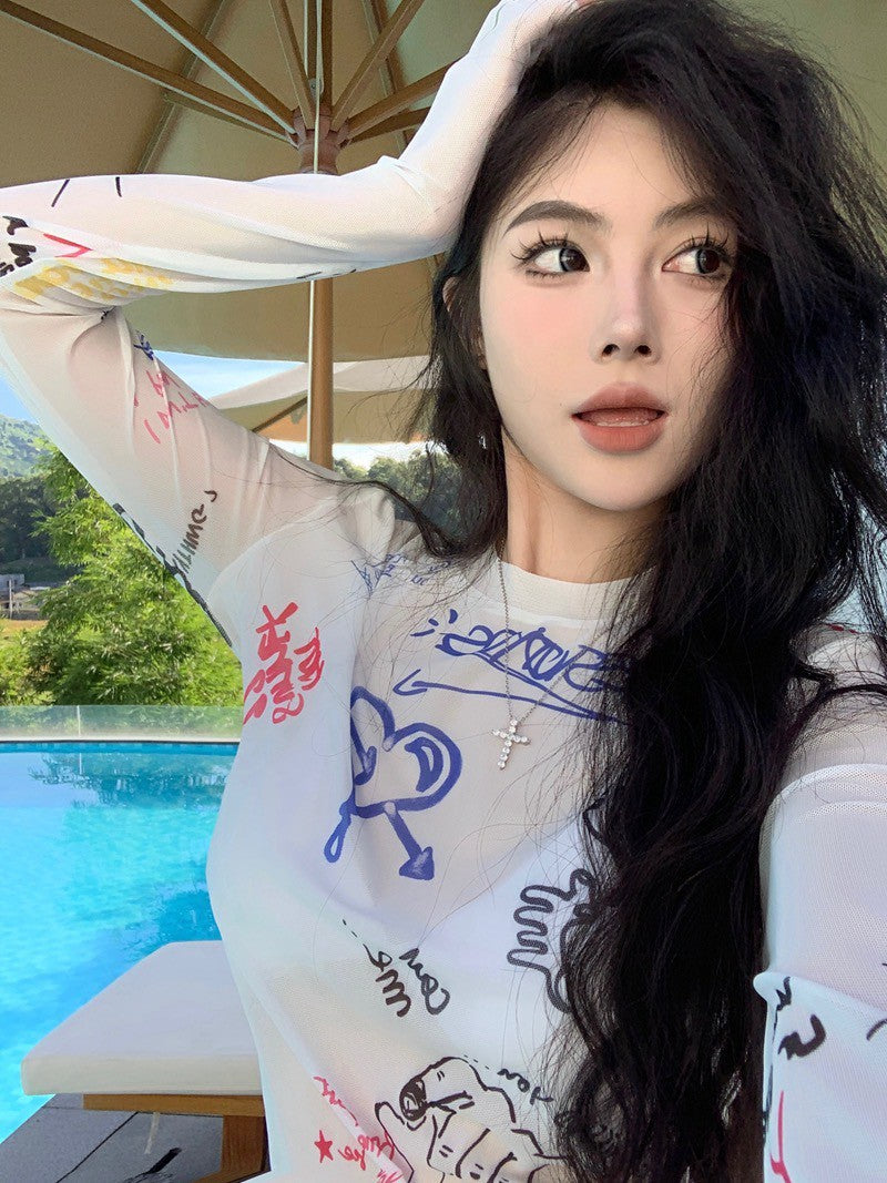 NA+ 炸街QQ手繪塗鴉防曬透視上衣