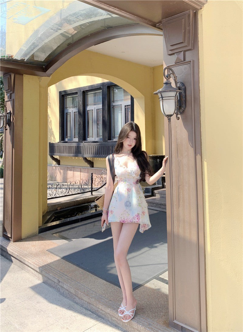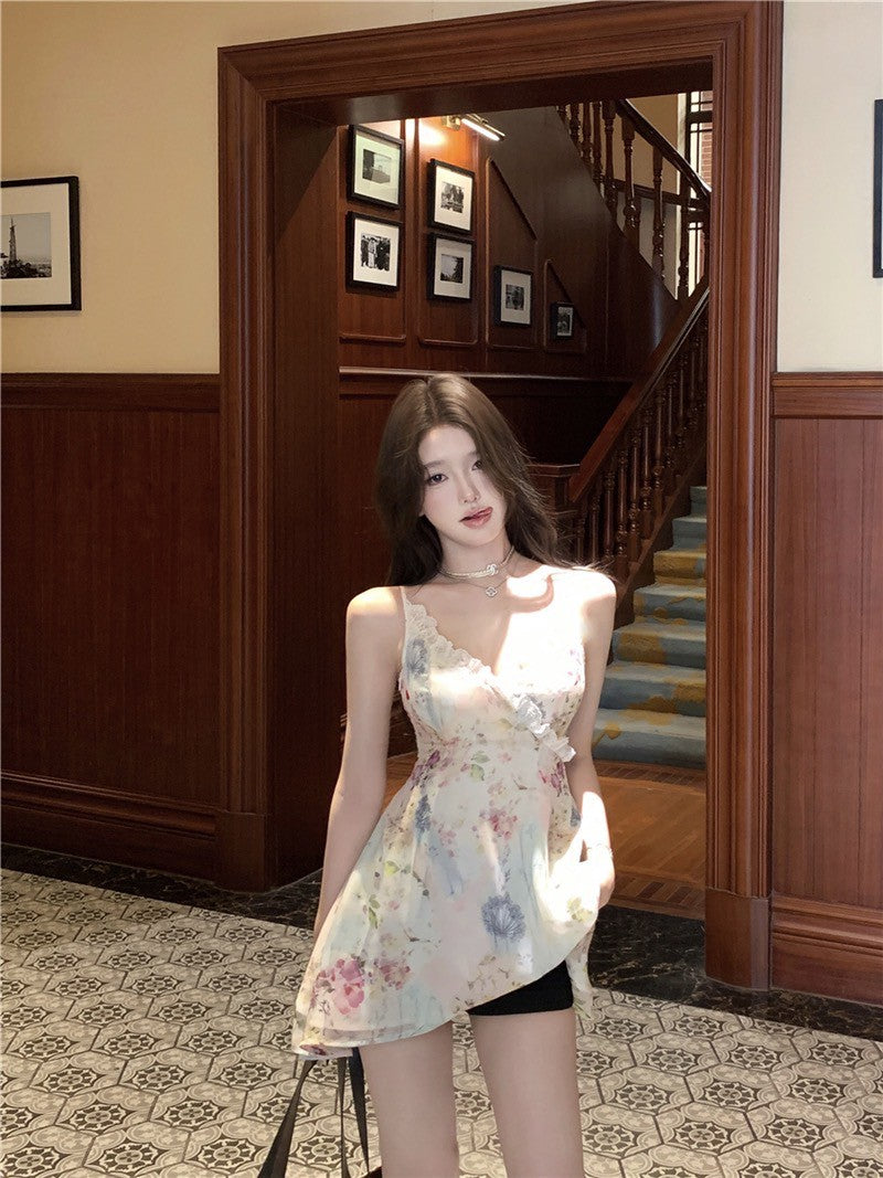 Na+ 熱帶雨林 V領收腰細肩上衣
