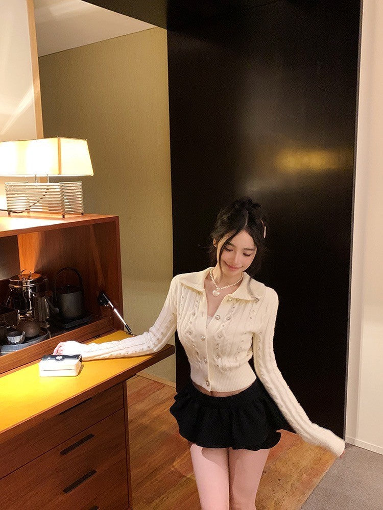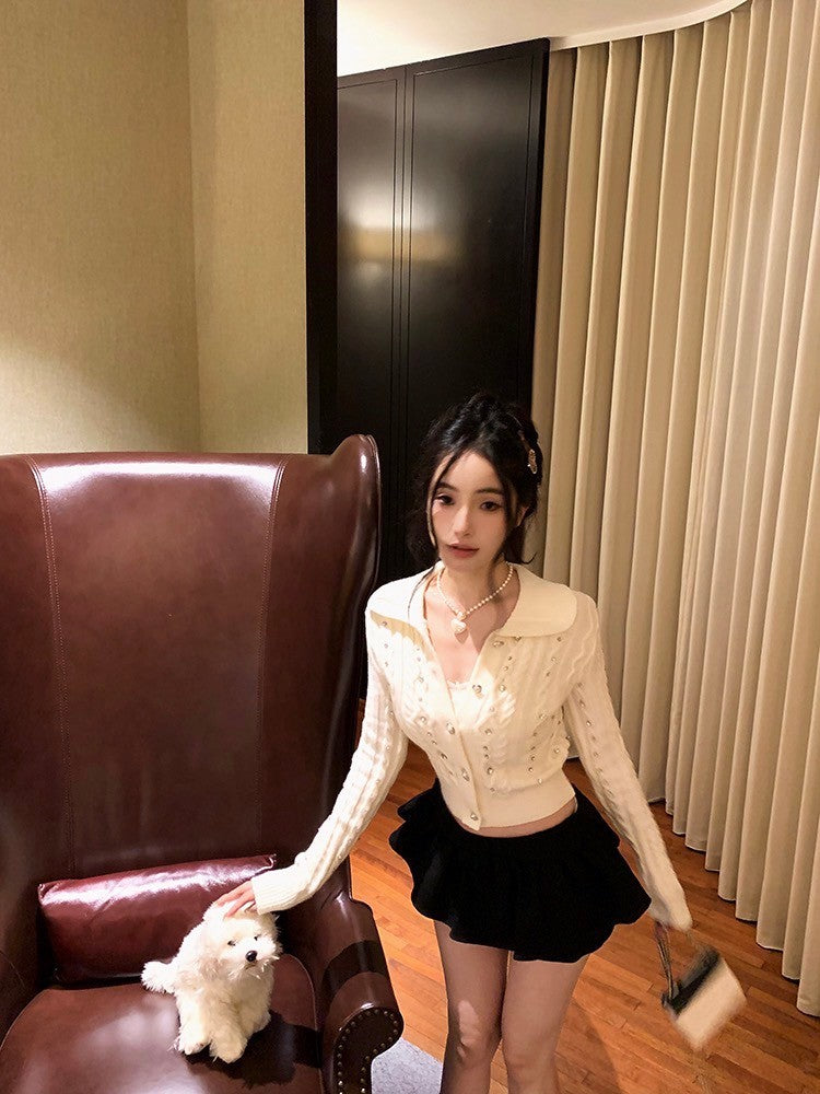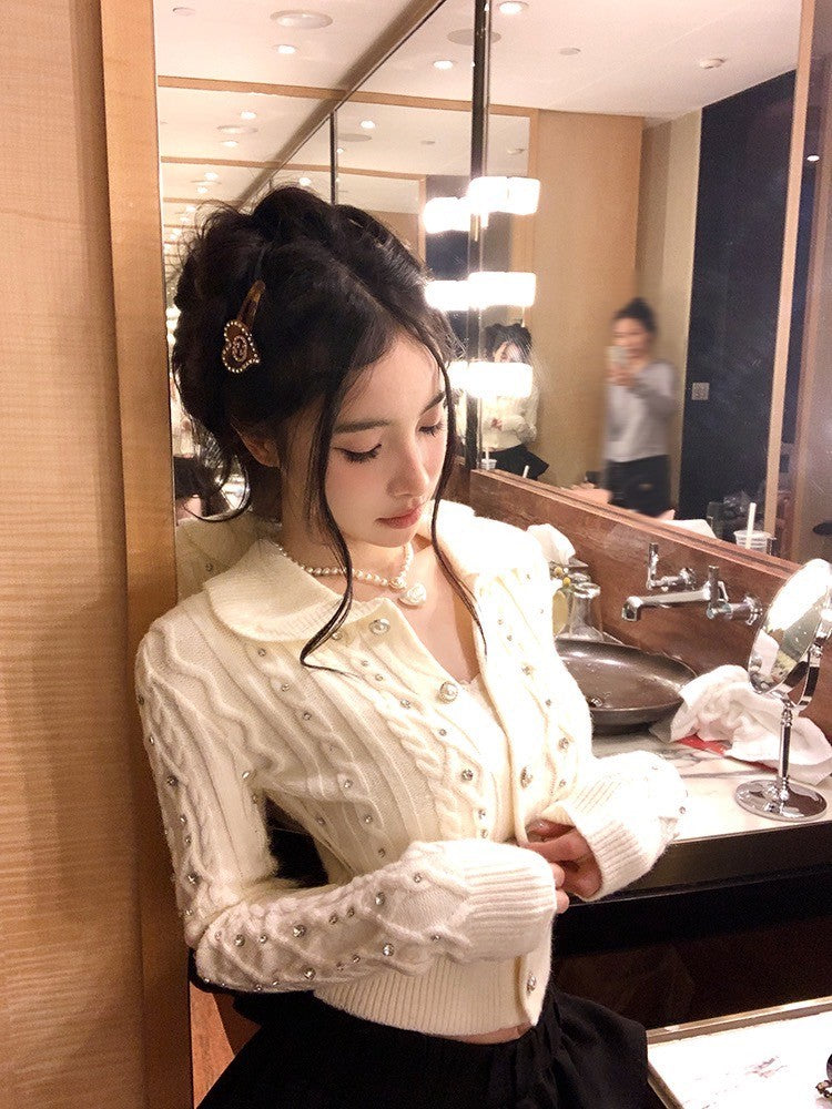''Na+''珍珠千金 高克重重工釘珠混羊絨針織上衣