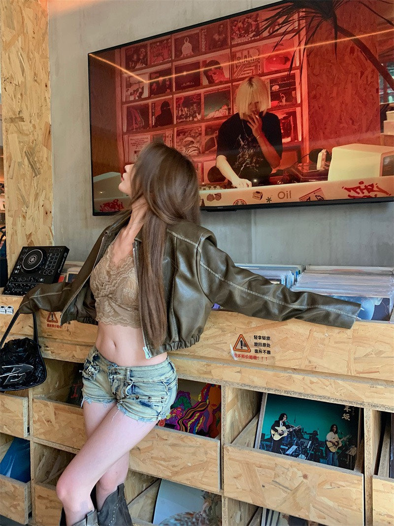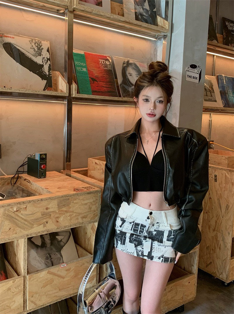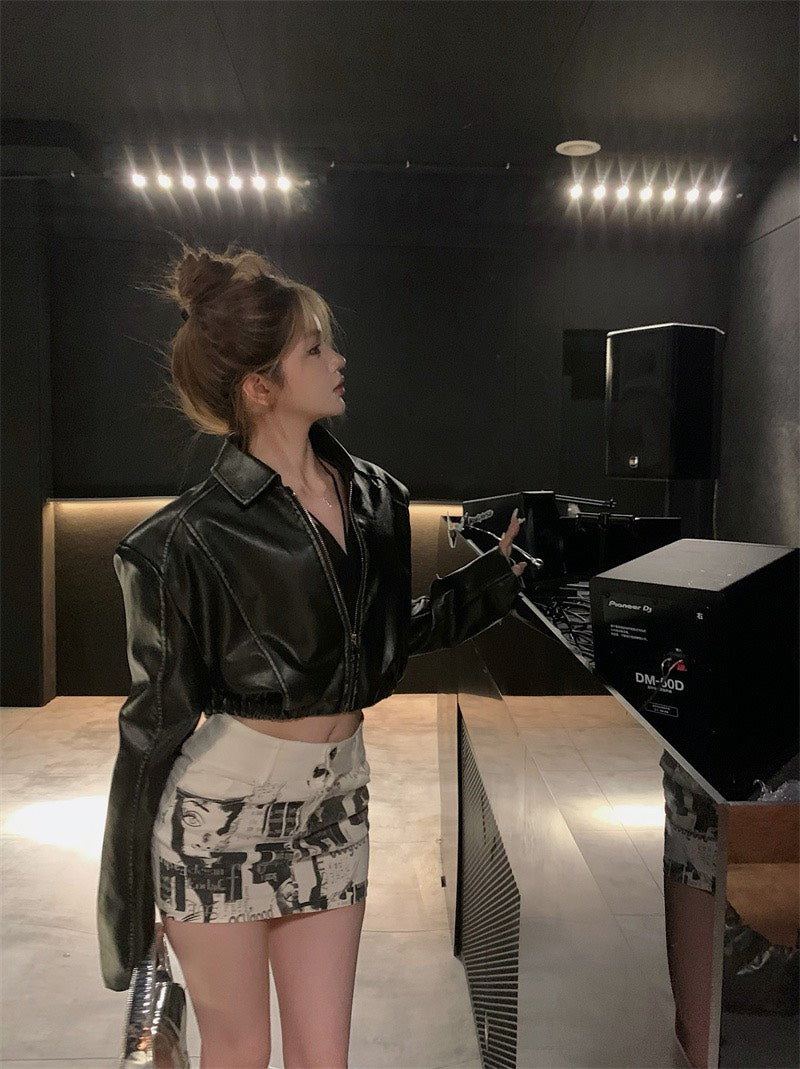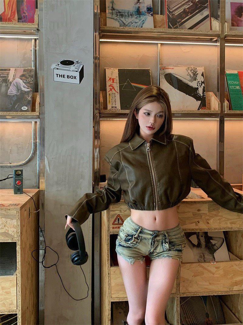NA+ 皮衣辣妹 重磅短款復古皮外套 咖/黑