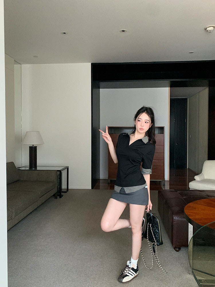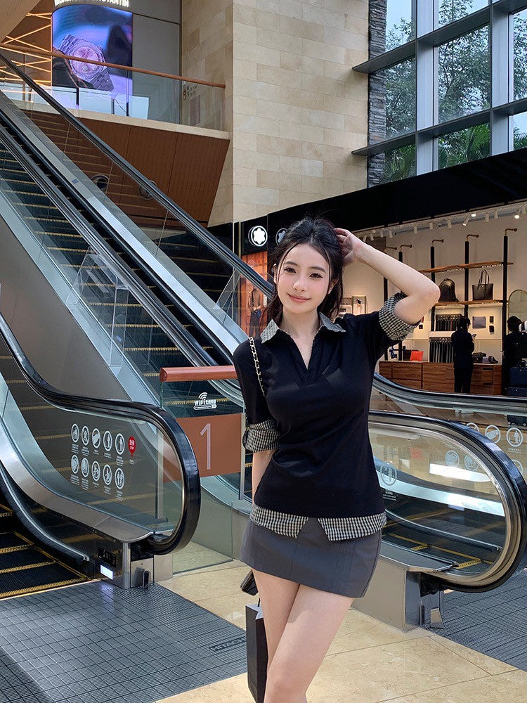 ''Na+''知性乖乖牌 polo拼色假兩件式簡約上衣