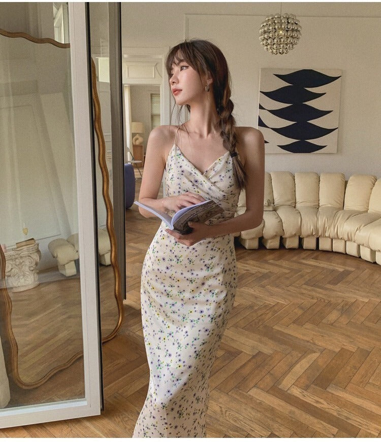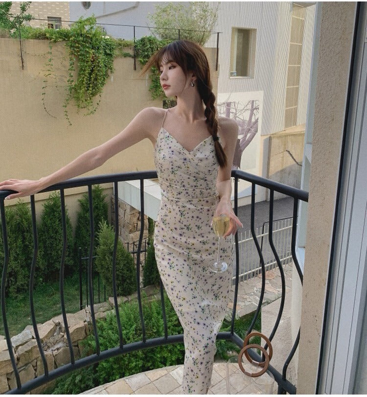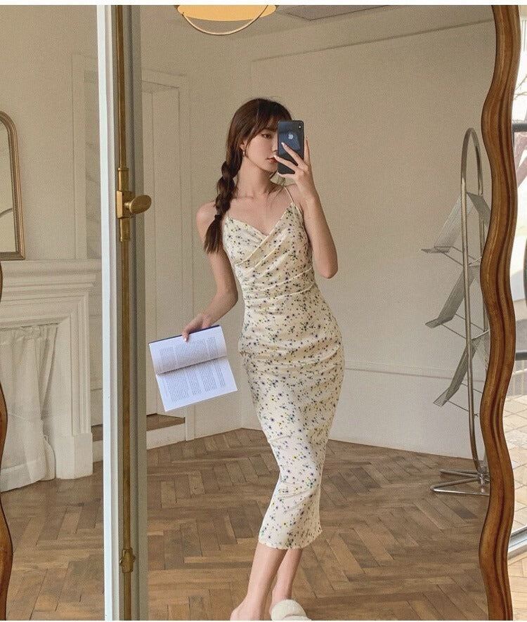 NA+ 碎花白蘭地 甜美春漾開叉洋裝 杏
