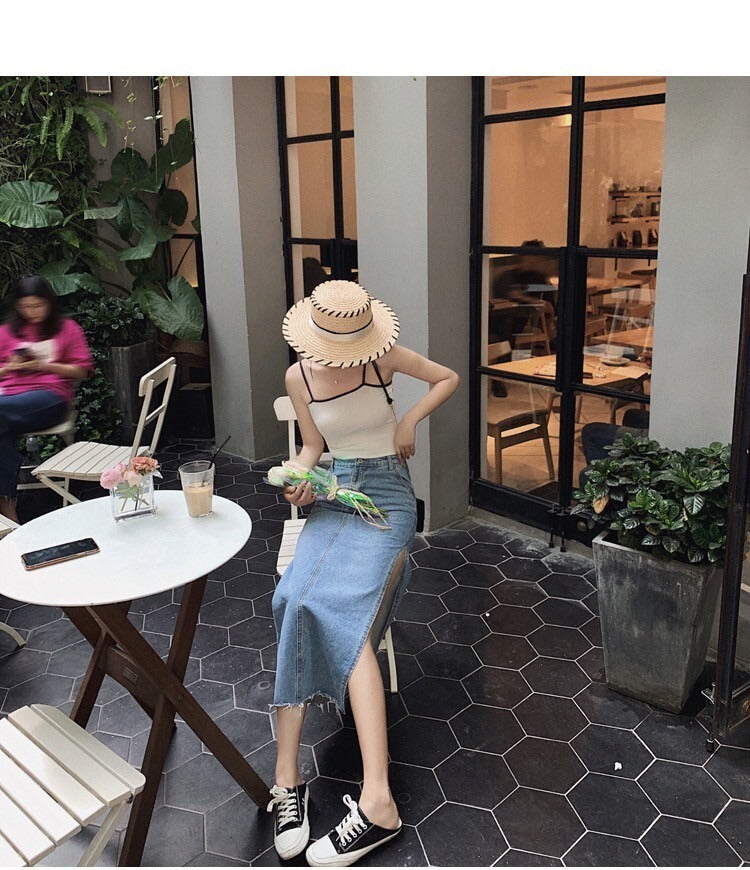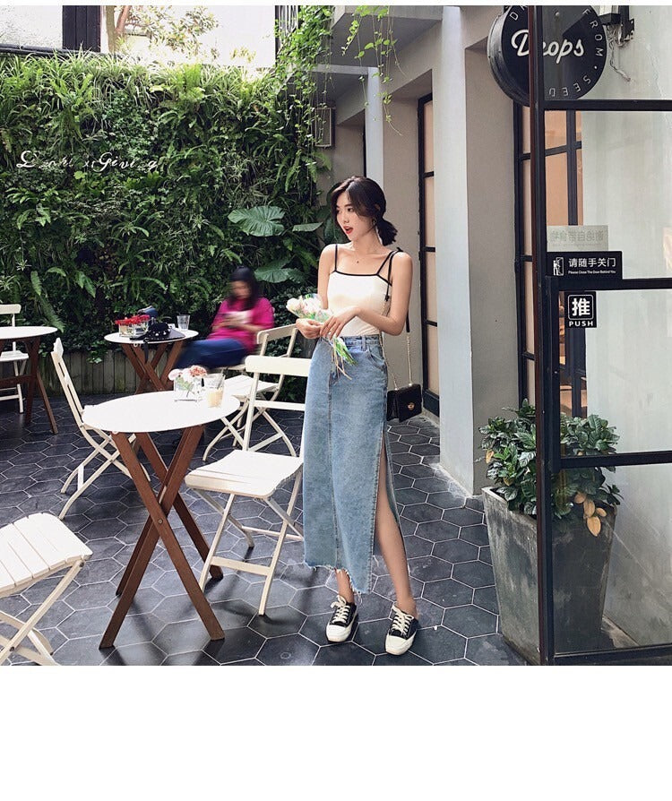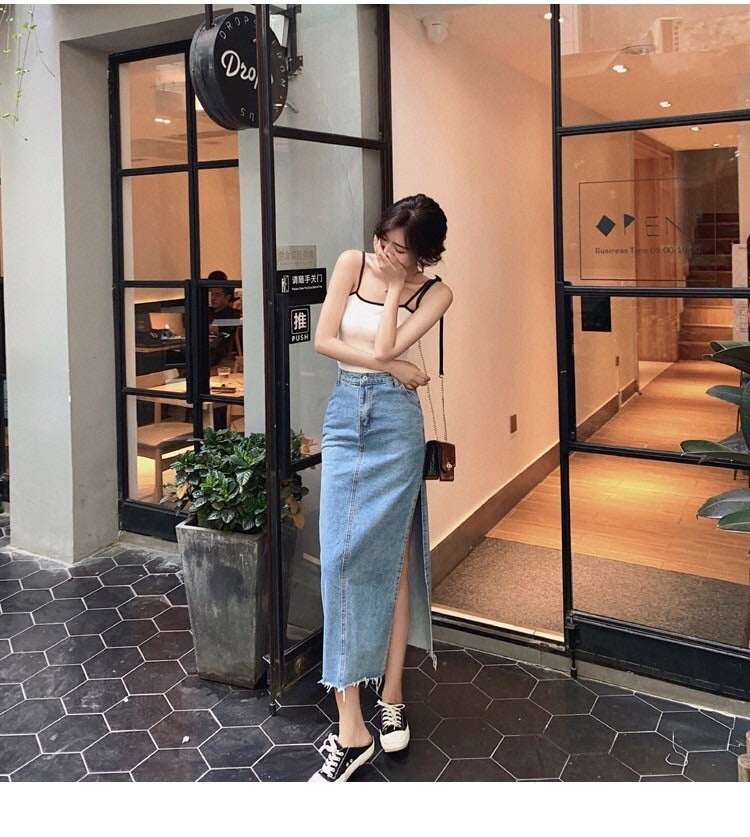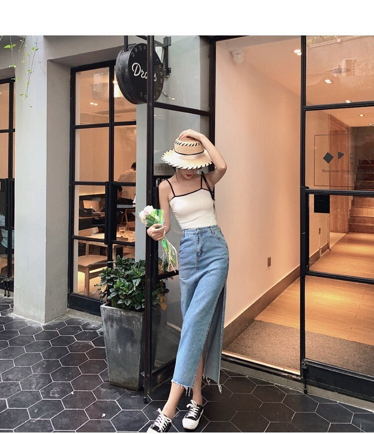 NA+ 簡約好看 修身側開衩牛仔半身裙