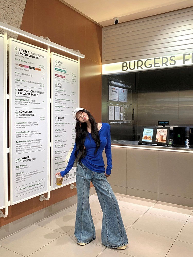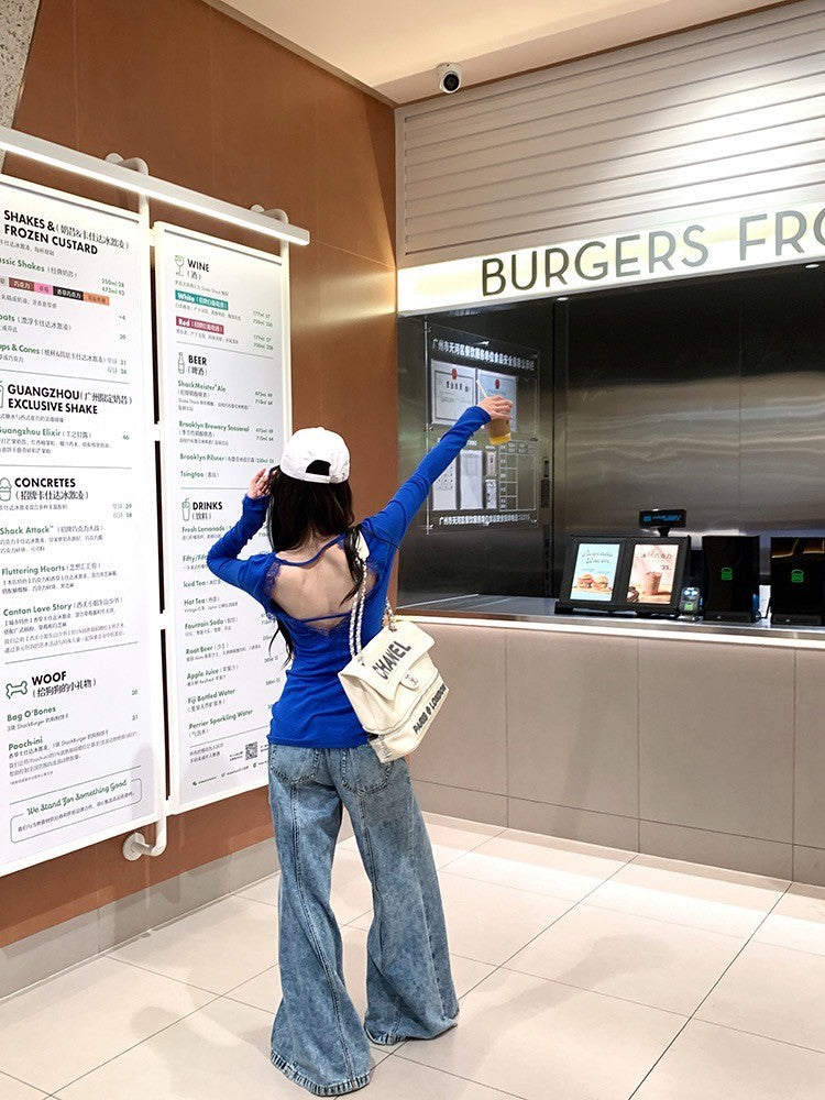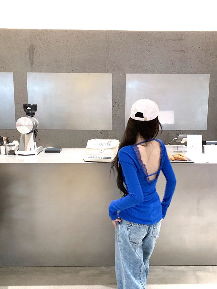 ''Na+''純欲軌跡 辣妹性感露背U領修身上衣 藍