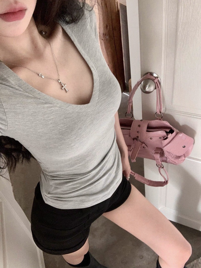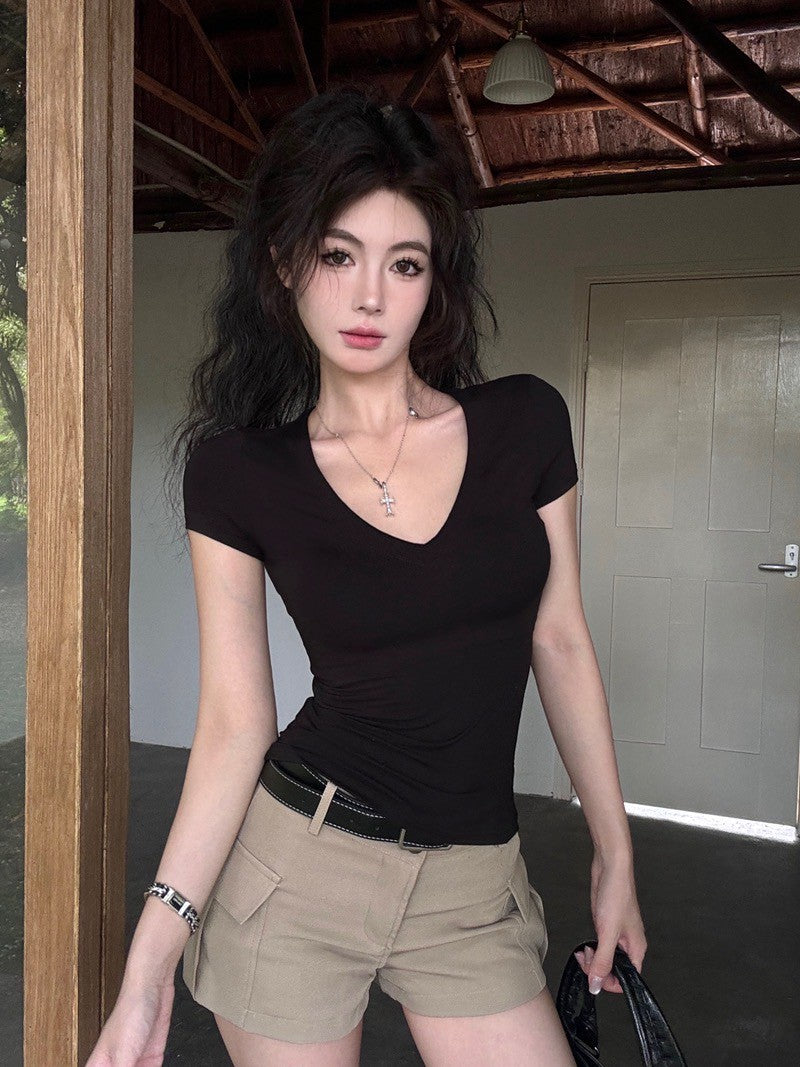 NA+ 絕對辣妹基礎百搭V領彈力上衣3色