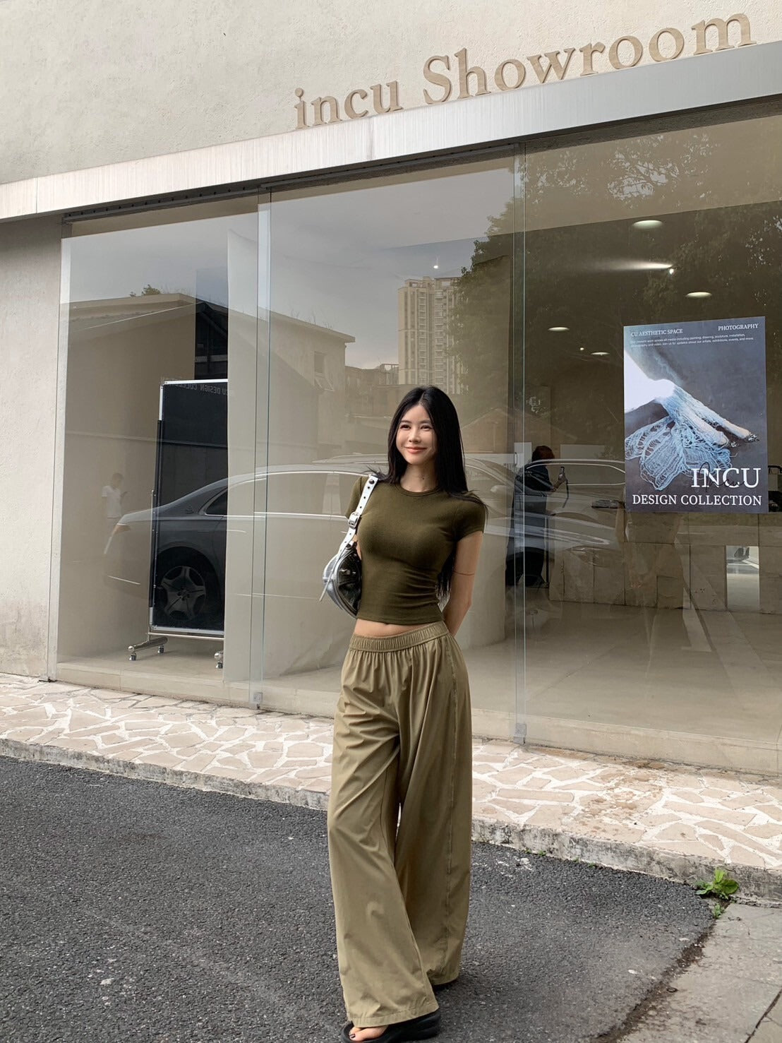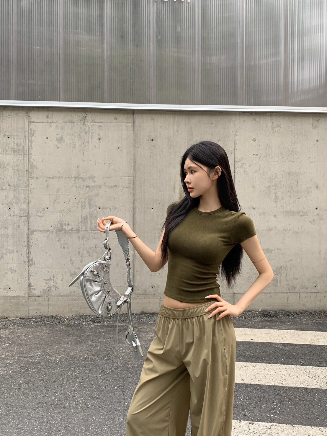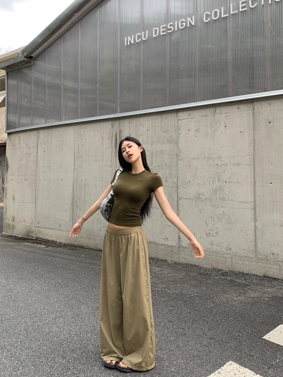 NA+ 美式修身軍綠彈力上衣/卡其鬆緊休閒褲