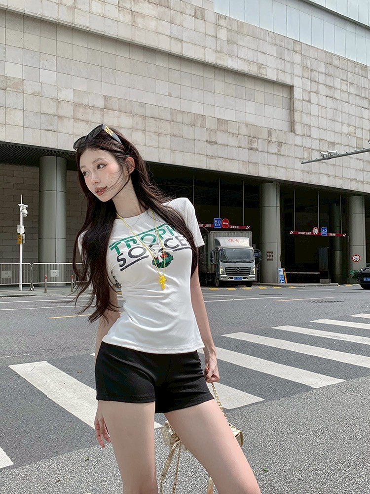 ''Na+''美式玩家 正肩後背縷空印花上衣 白/灰
