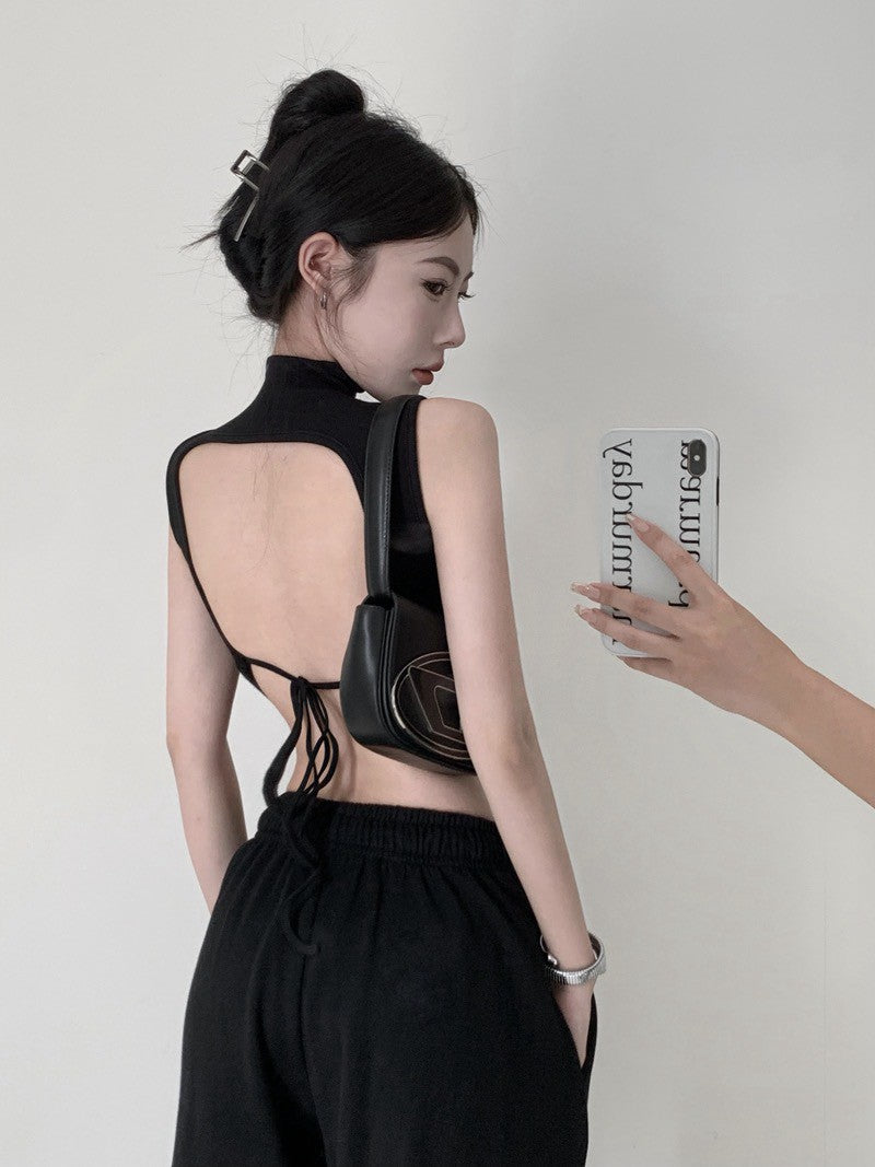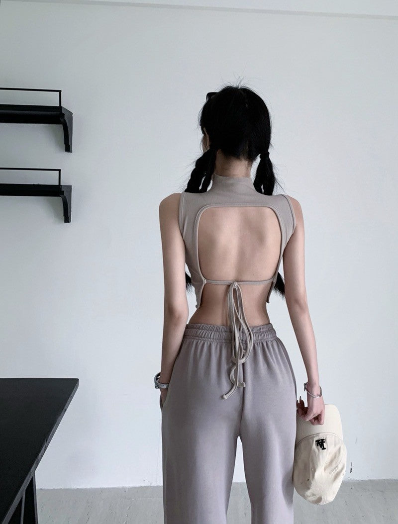 NA+ 美背特輯高領露臍綁帶背心 黑/卡其