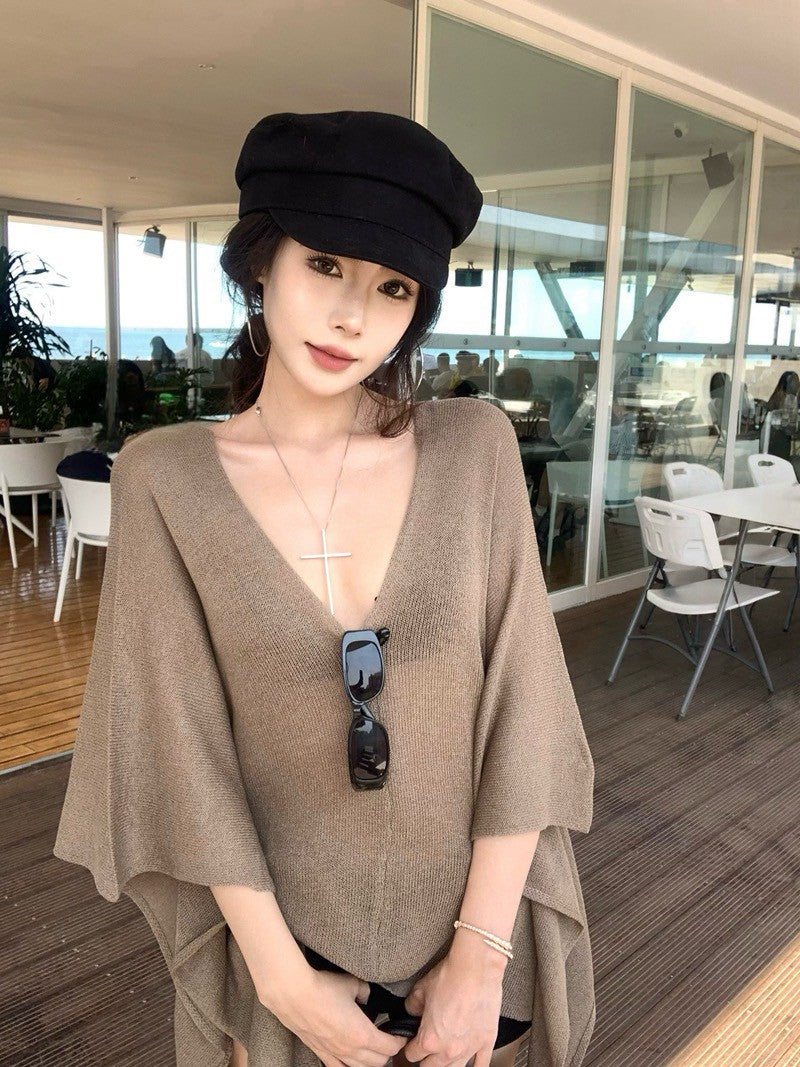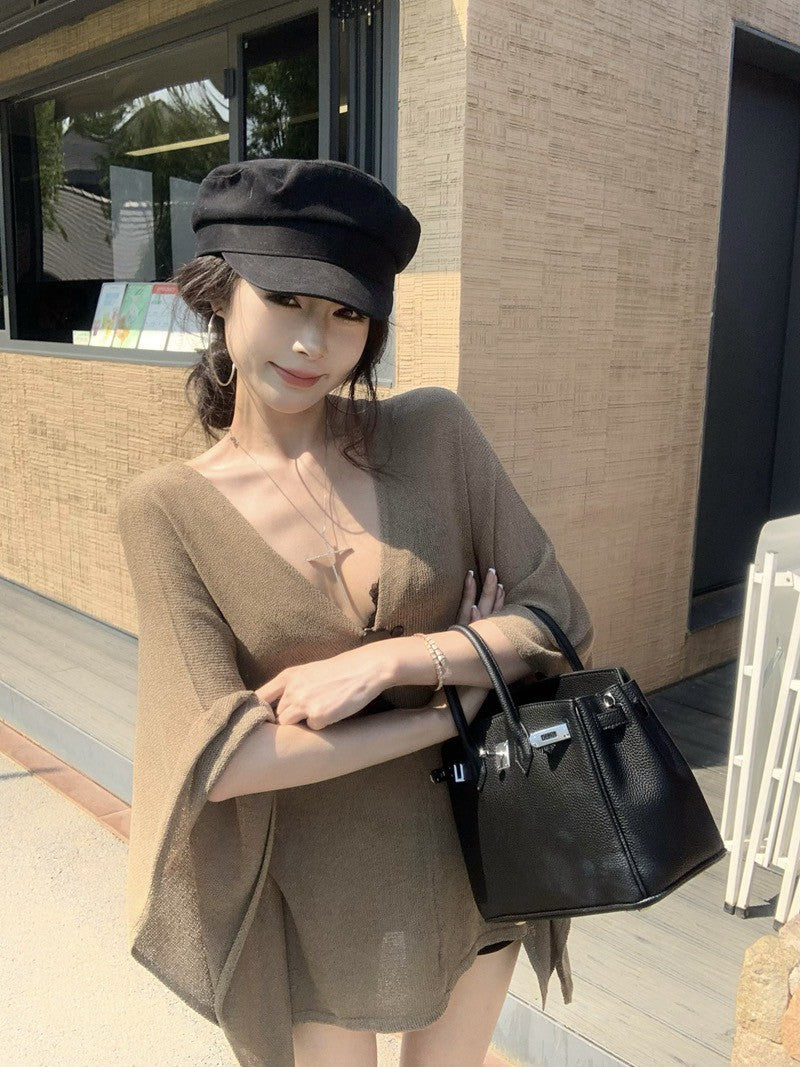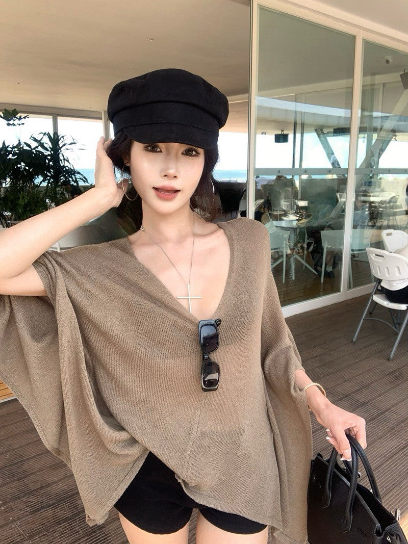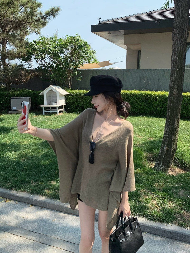 NA+ 老錢慵懶鬆弛感蝙蝠袖針織罩衣