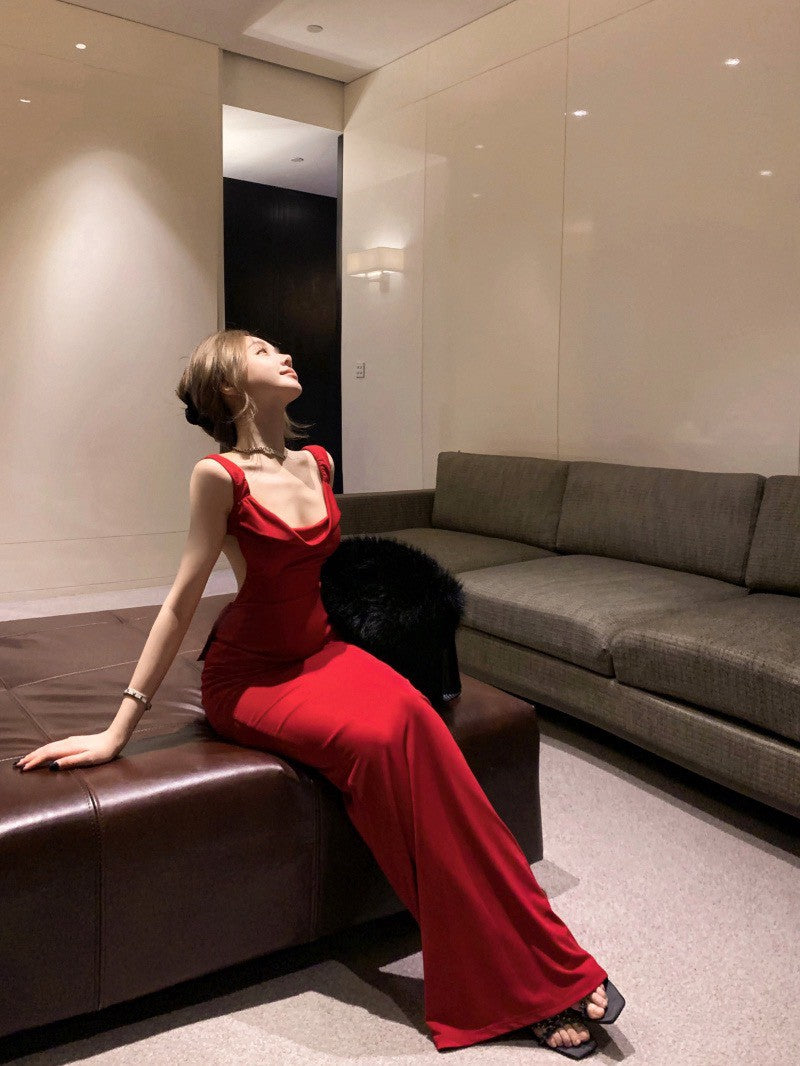NA+ 聖誕宴 性感蝴蝶結美背禮服裙 紅