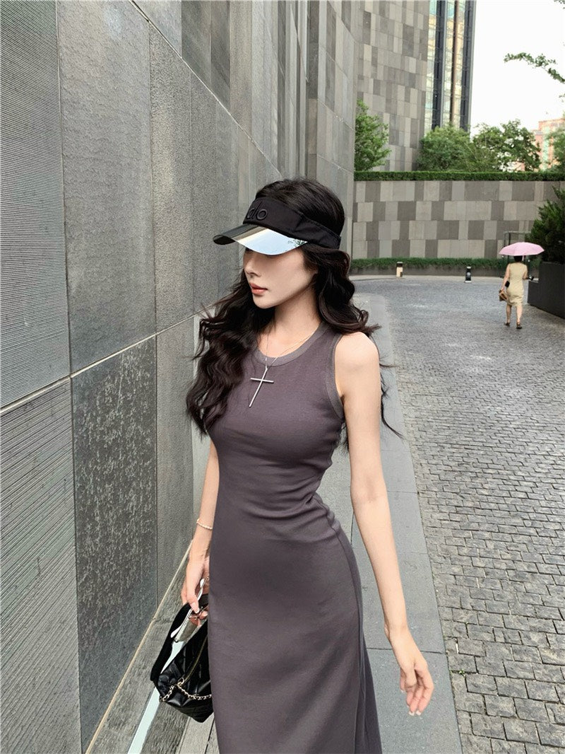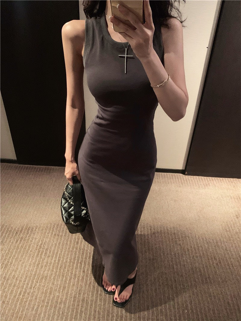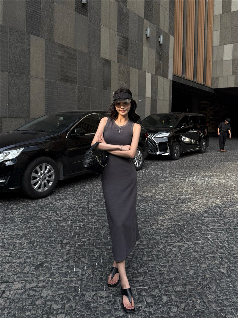 NA+ 舒適通勤歐美收腰美背連身裙 灰