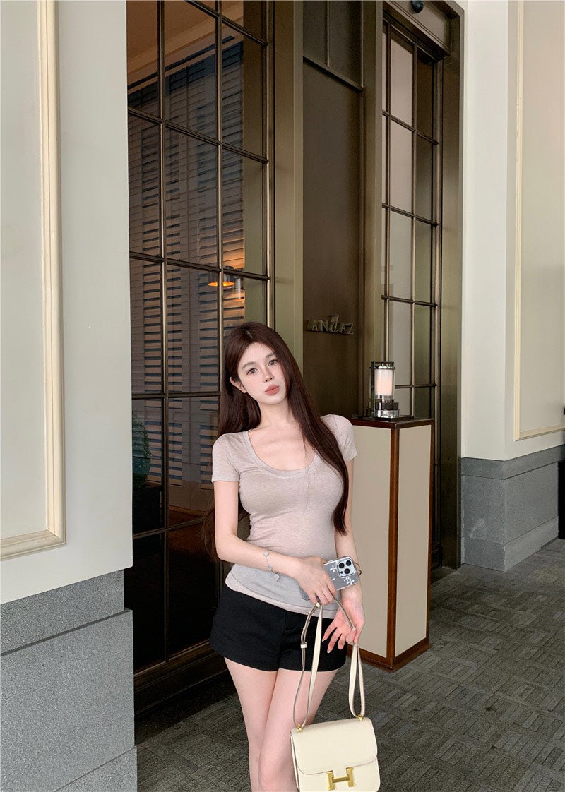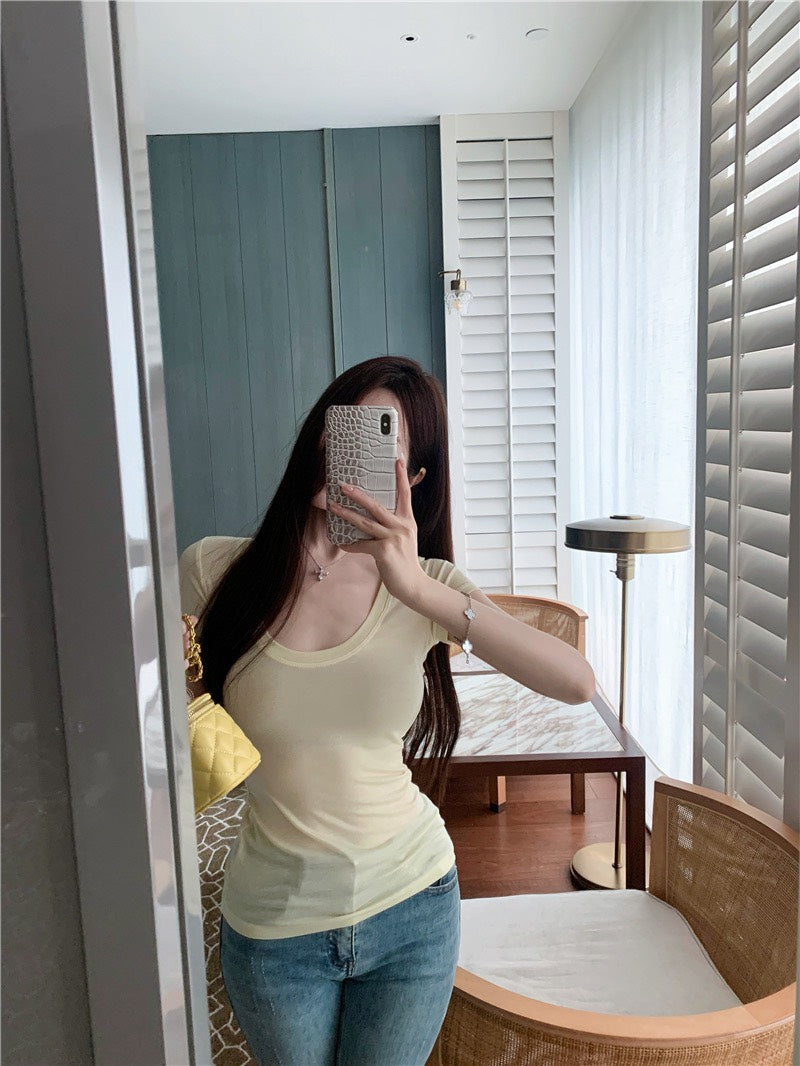 NA+ 若隱若現再續U領彈力上衣 奶黃/米咖