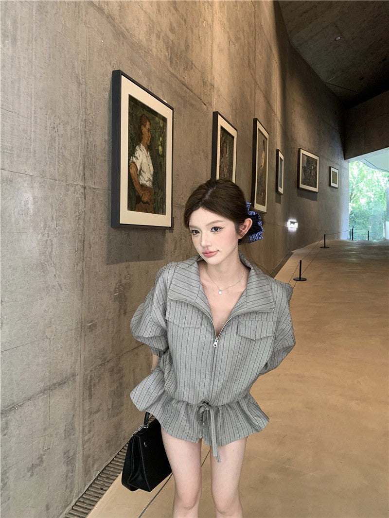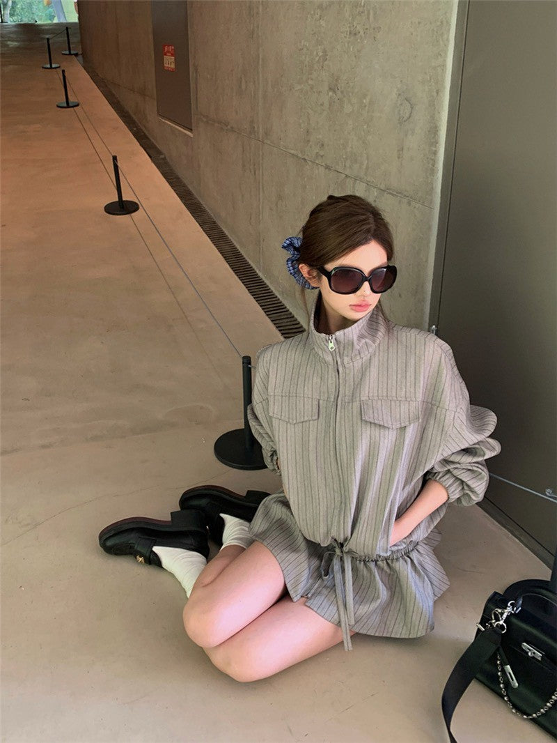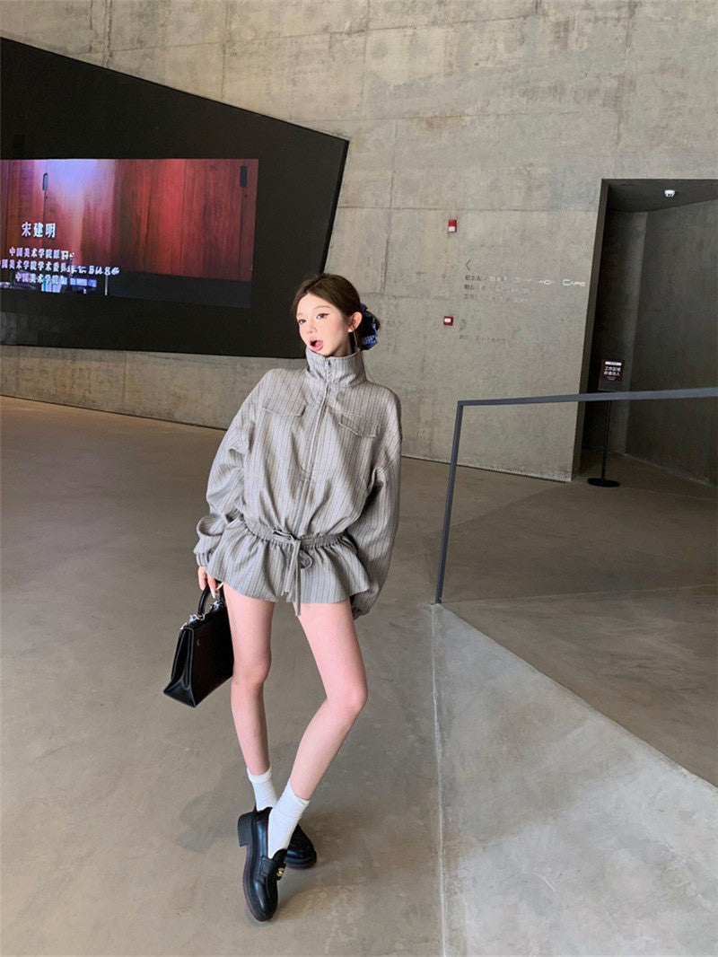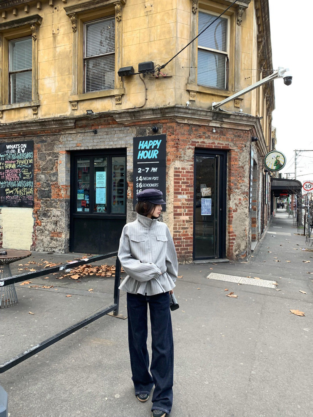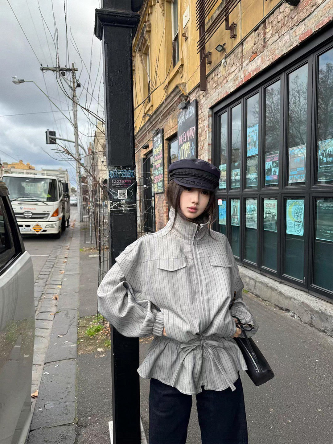NA+ 英倫留學復古抽繩夾克外套 條紋