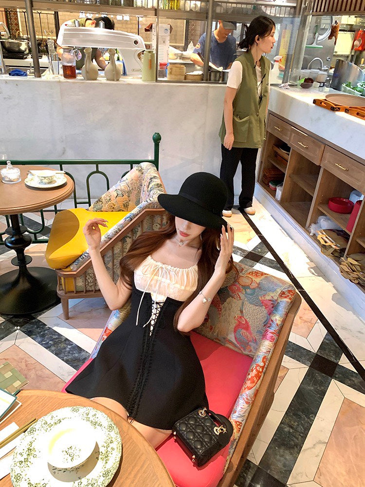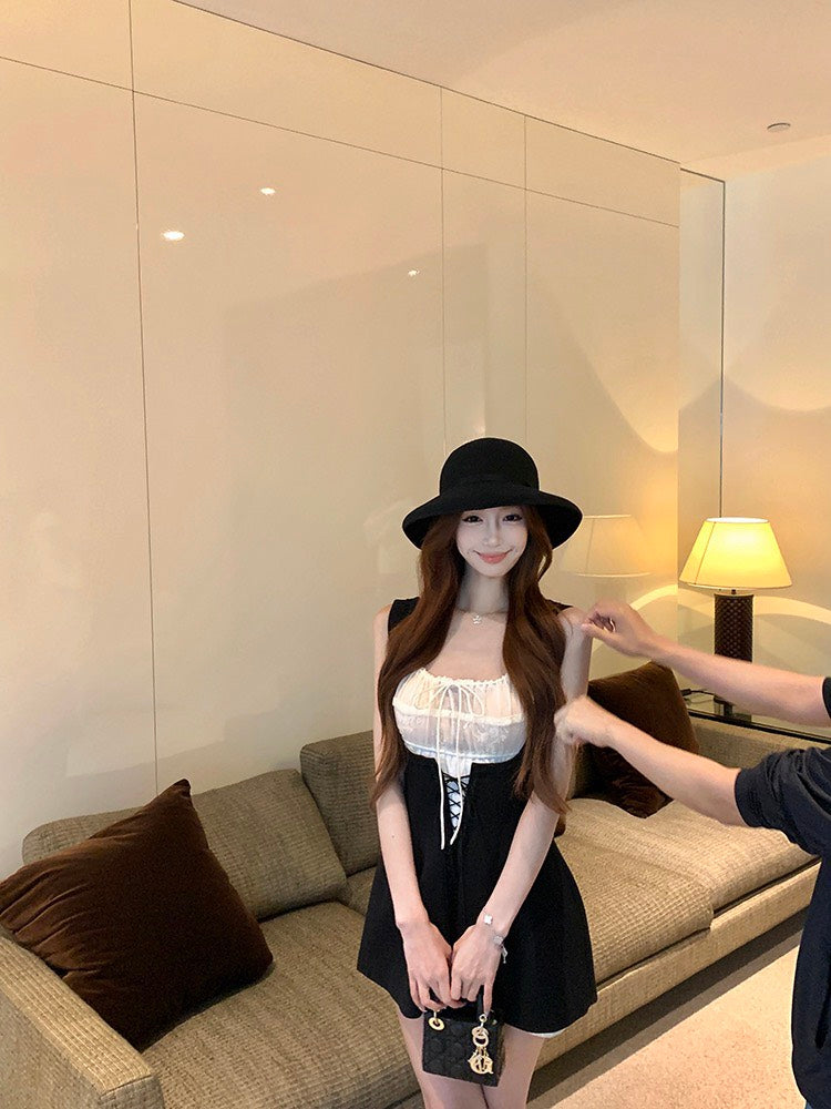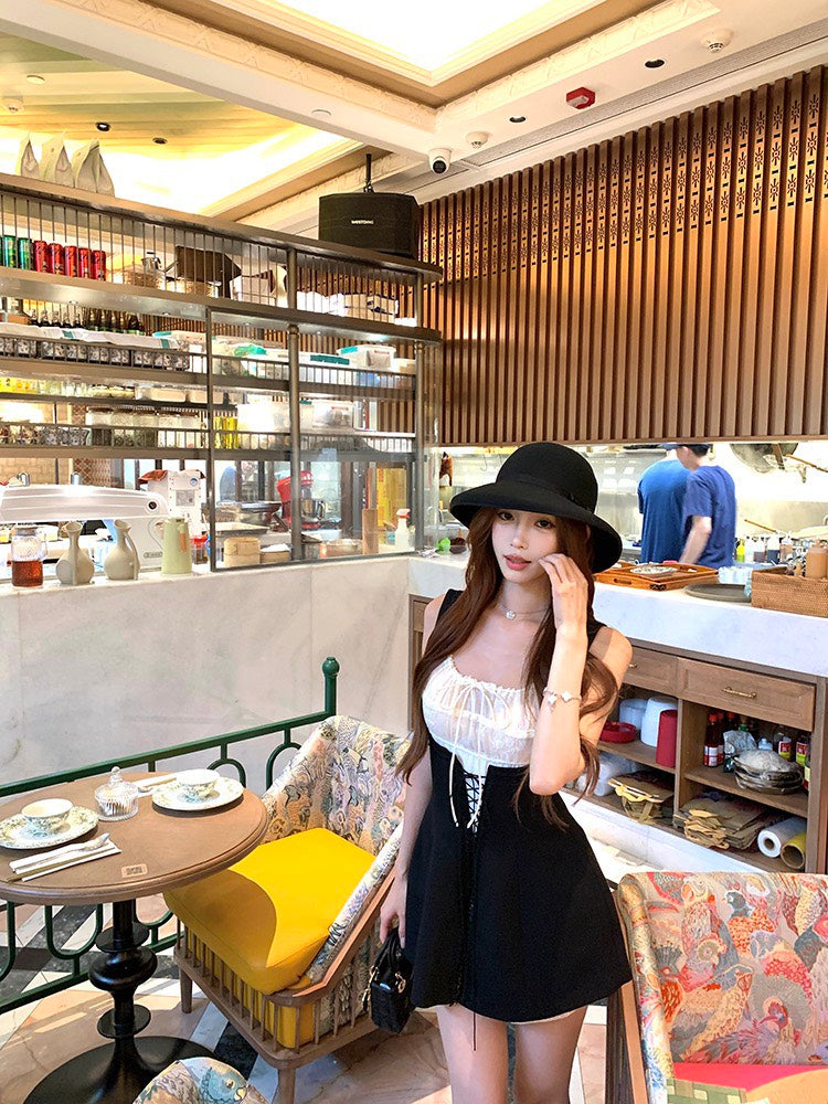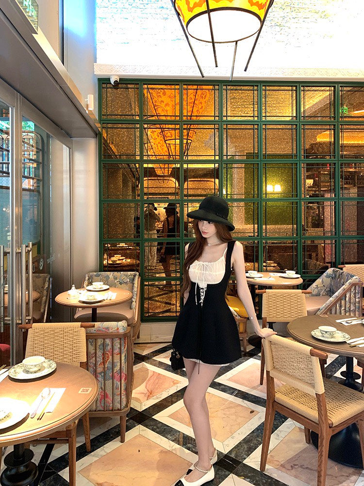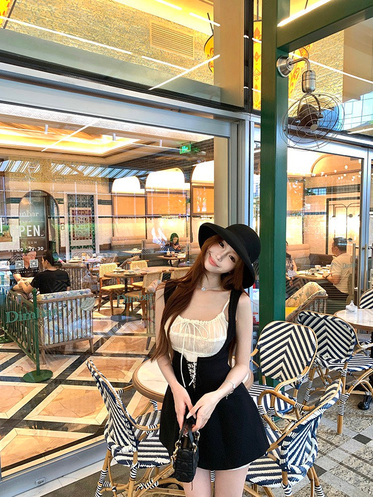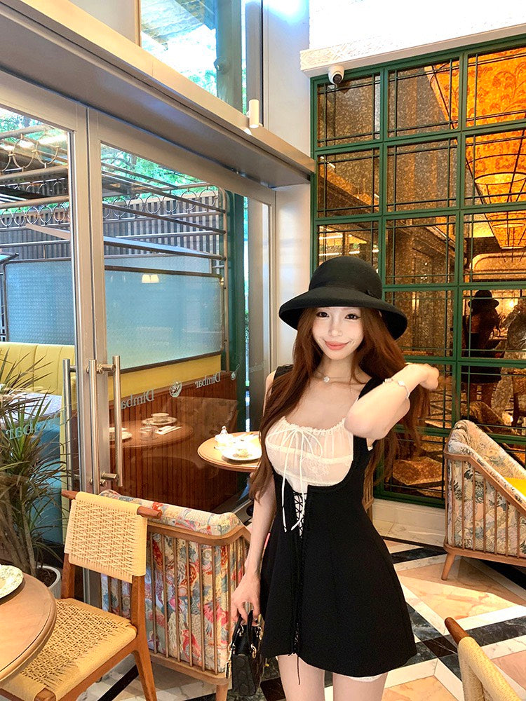 NA+ 赫本仲夏夢 可愛花邊收腰短裙 疊穿2版選(黑/白)