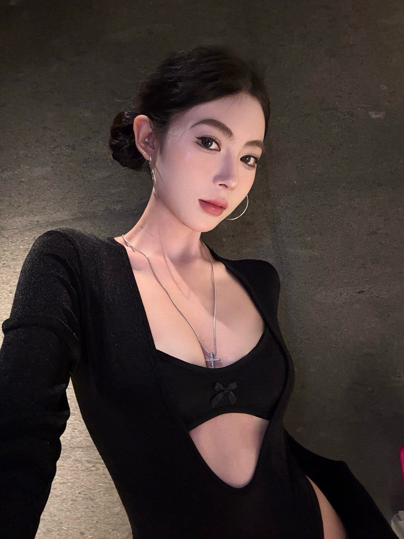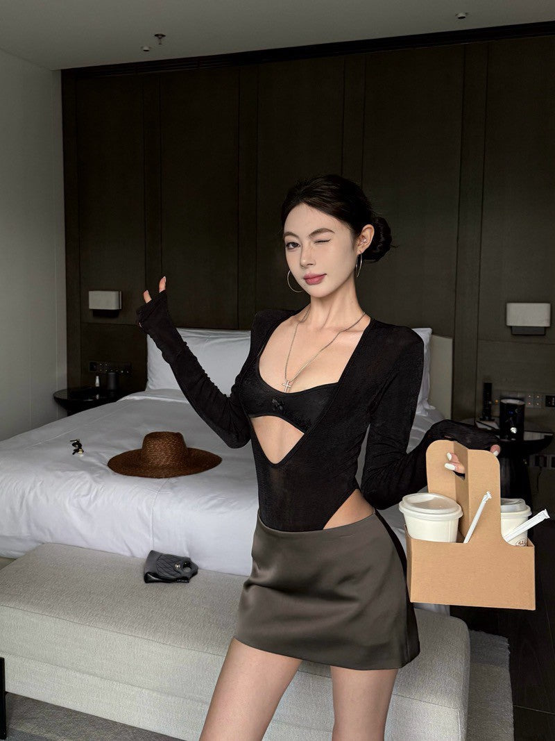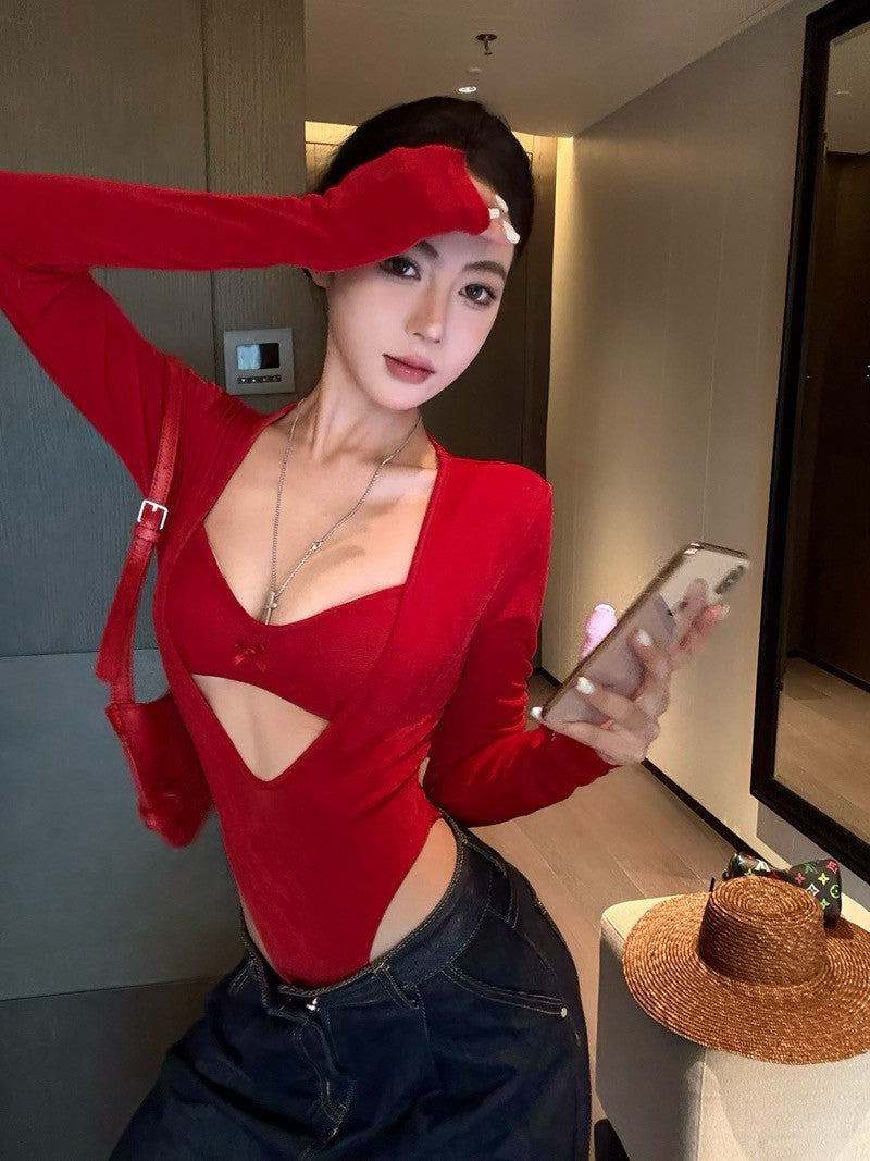 NA+ 跟上風潮內衣外穿2件式蕾絲連體衣 紅/黑
