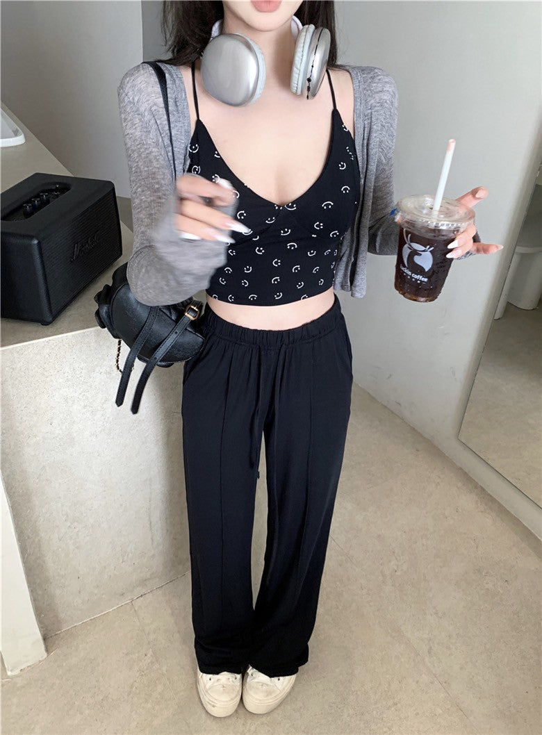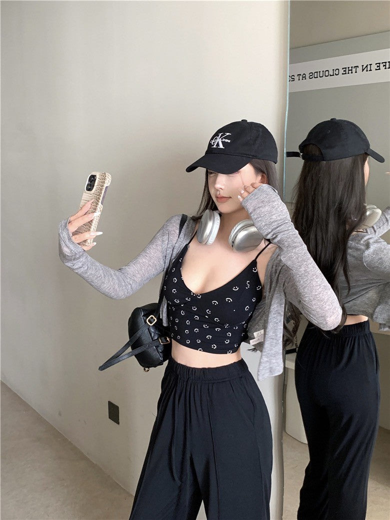 Na+ 辣妹夏日笑臉印花吊帶 開衫2件套