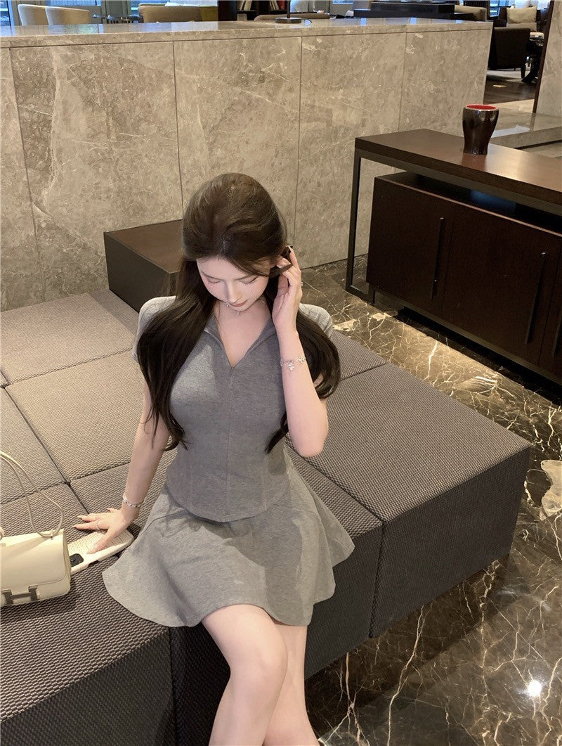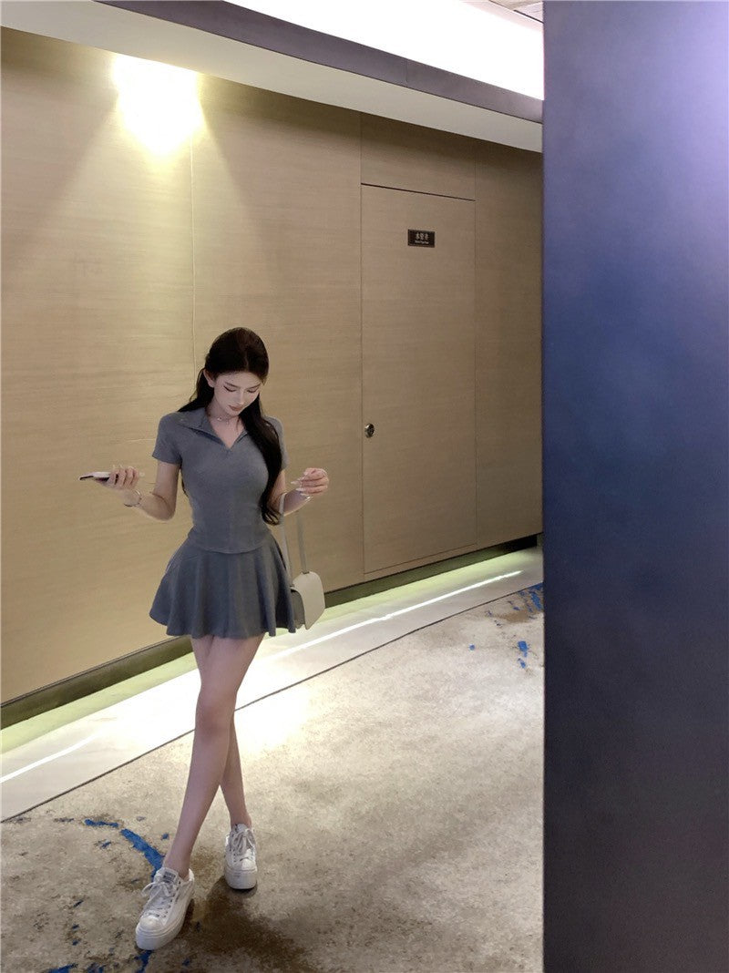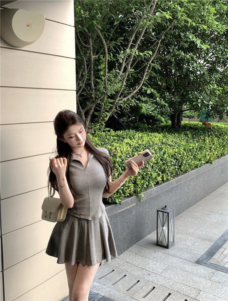 Na+ 運動clean fitting 休閒簡約polo領半身裙套裝 灰
