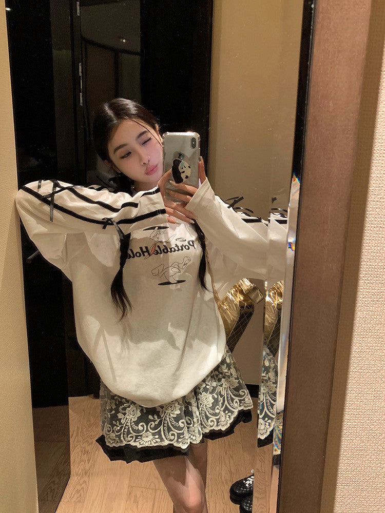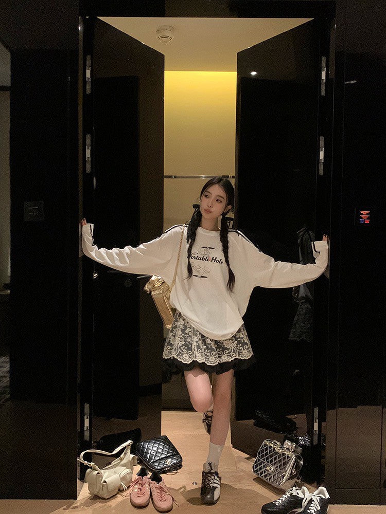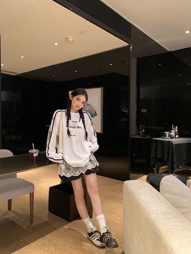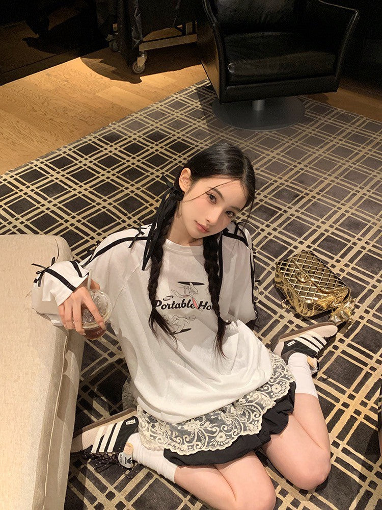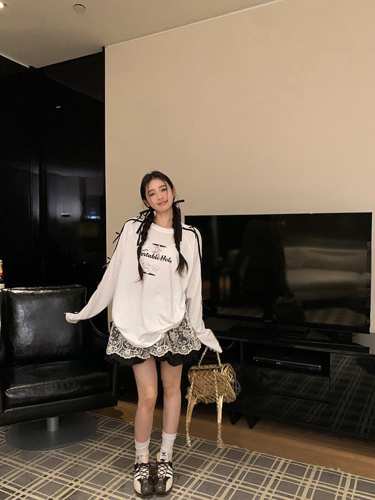 NA+ 韓妞甜心 蝴蝶結字母長袖上衣