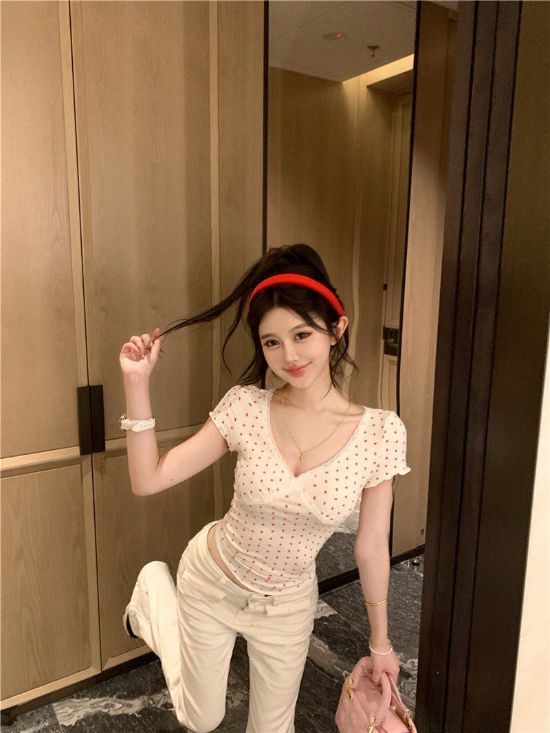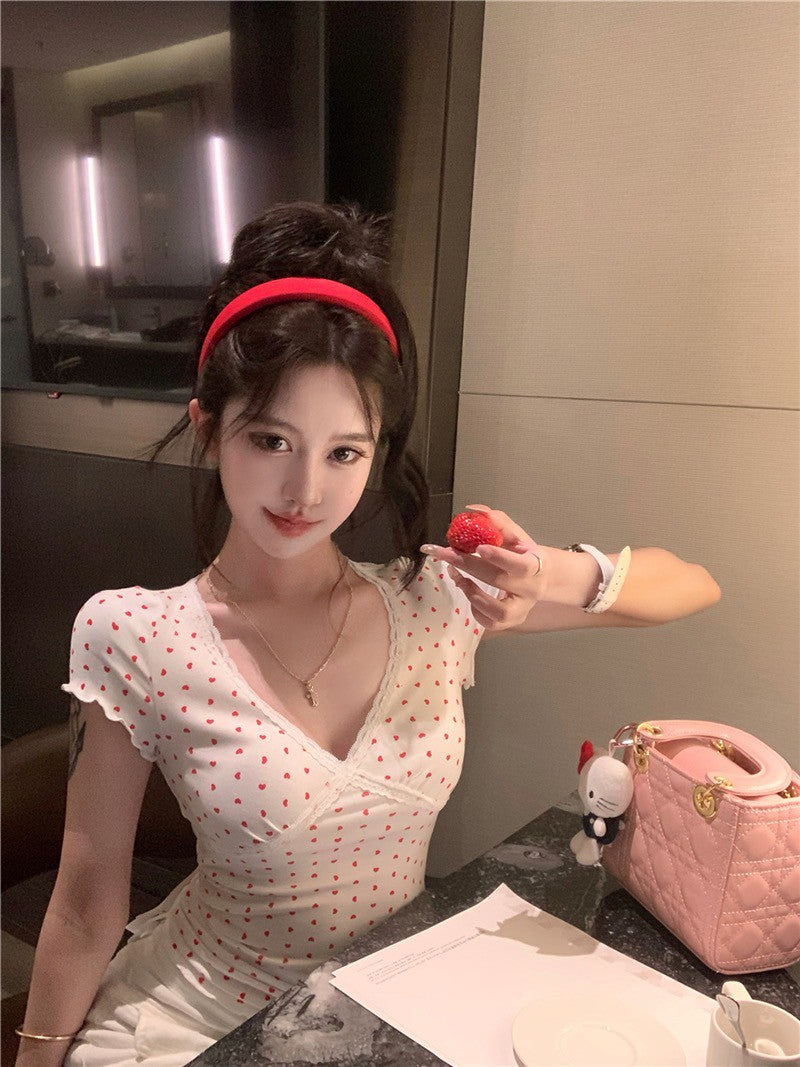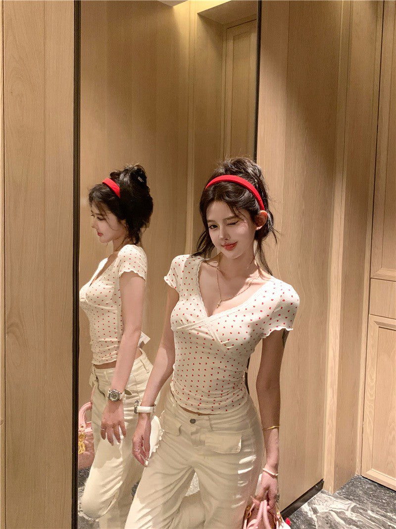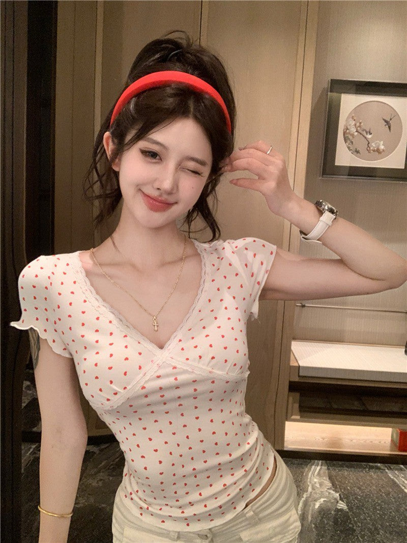 Na+ 韓系香奶奶 蕾絲修身薄款上衣 愛心印花款