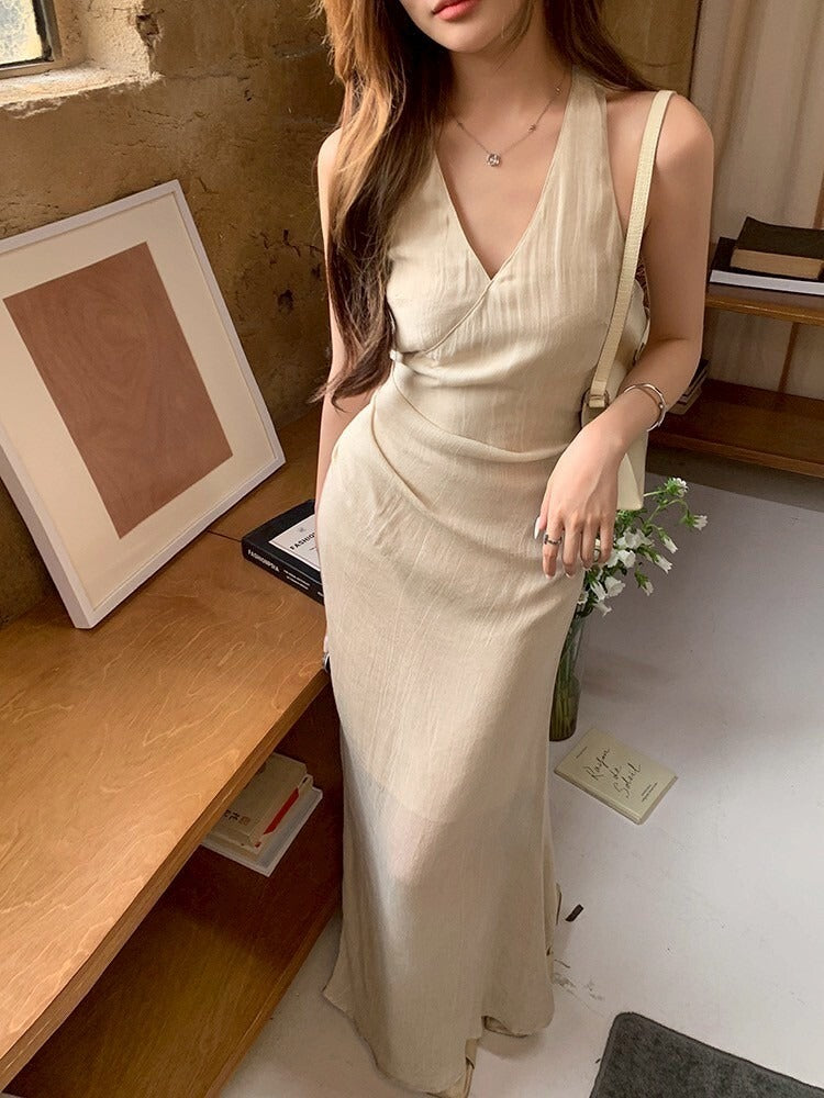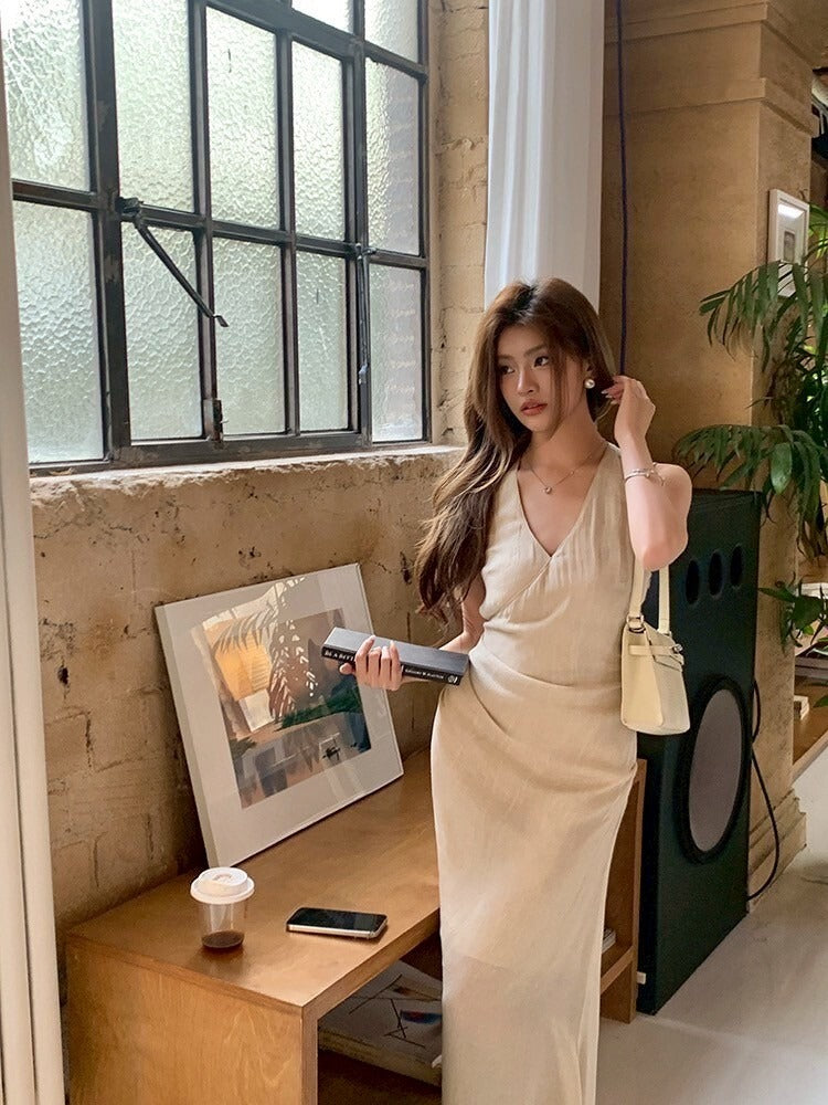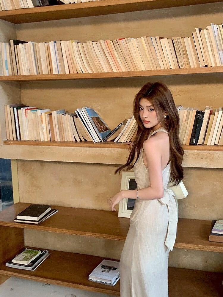 NA+ 高知姐姐 氣質綁帶收腰連身裙 杏