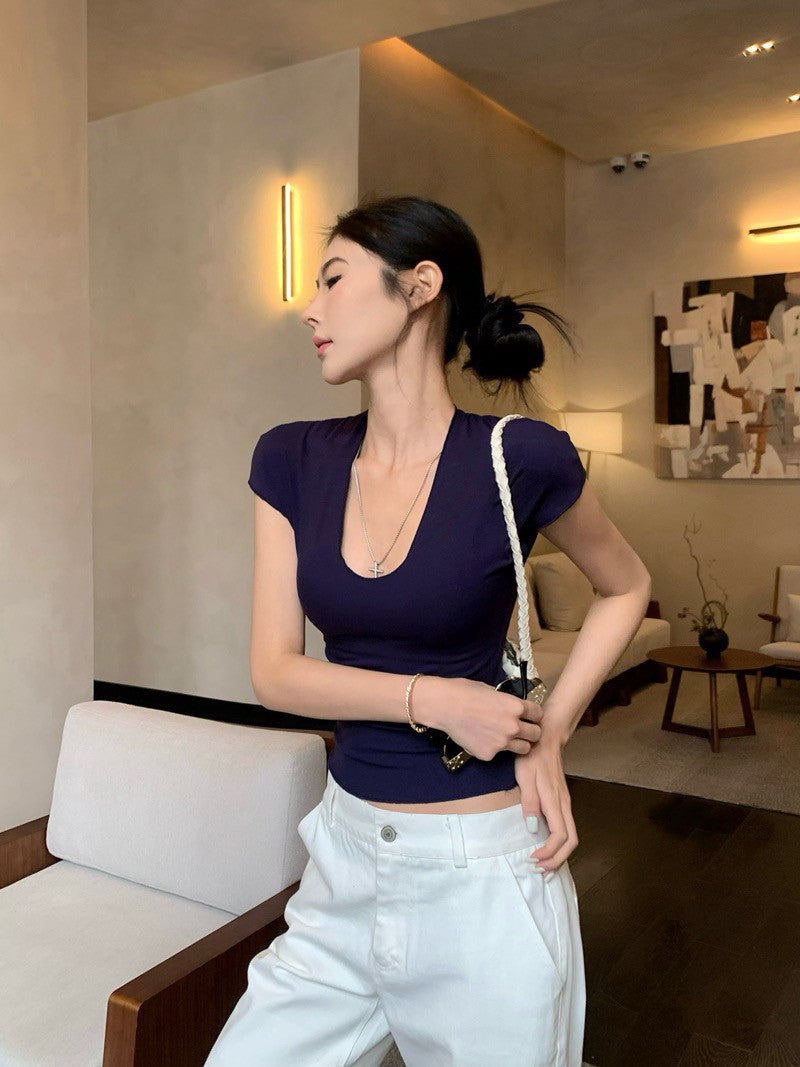 Na+ 高級簡約鎖骨面膜tee 卡其/藏藍