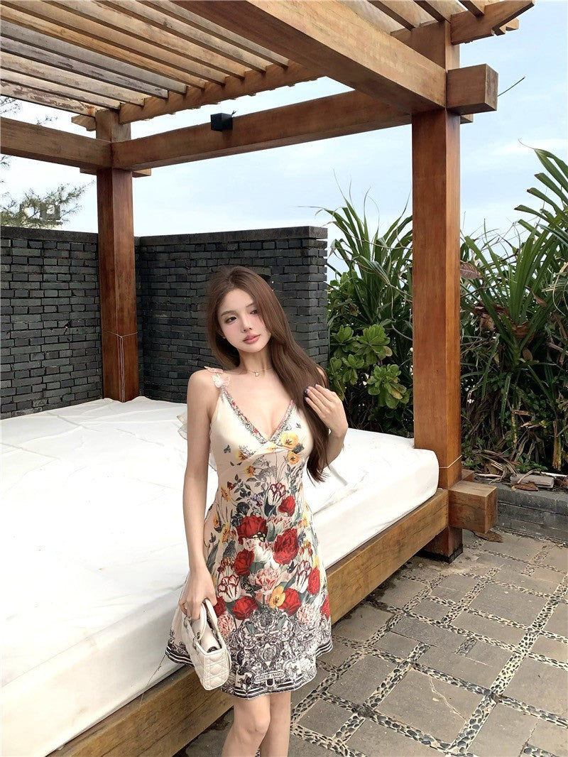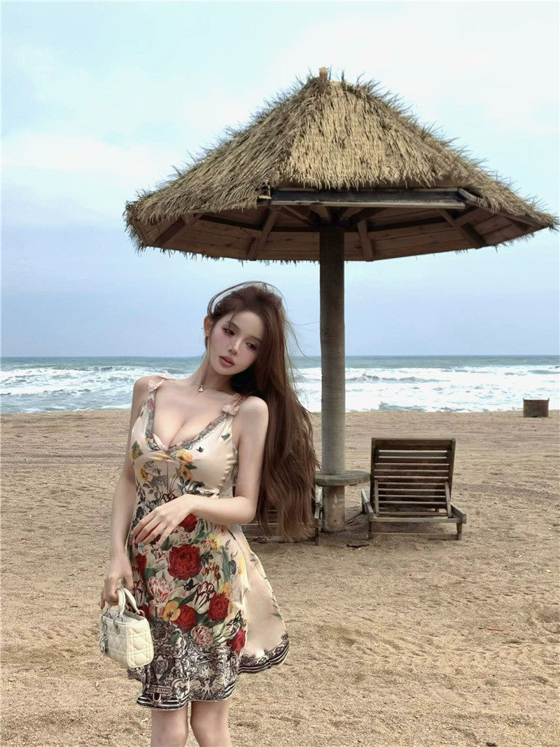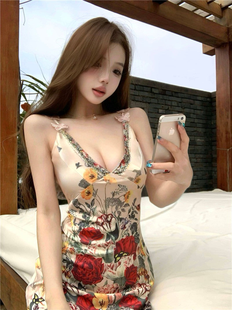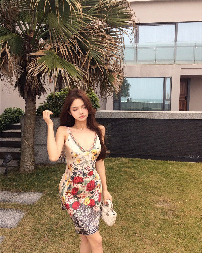 Na+ 高訂秀款定位蝴蝶玫瑰V領連身裙