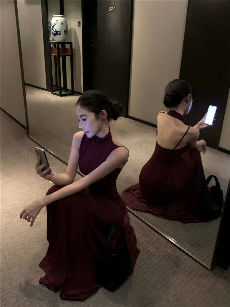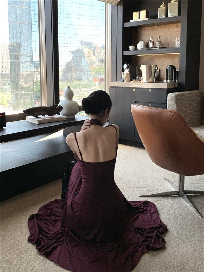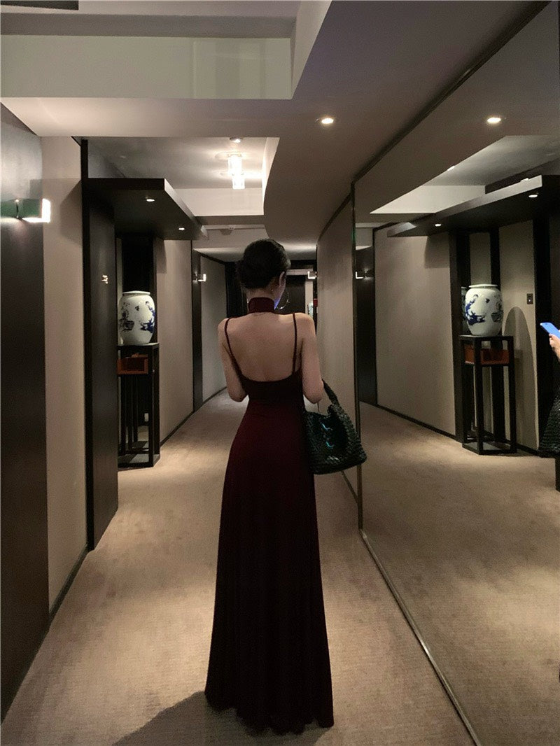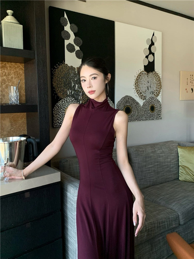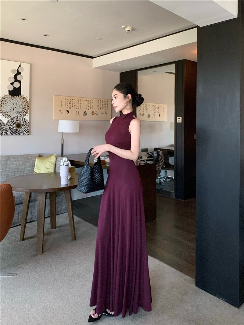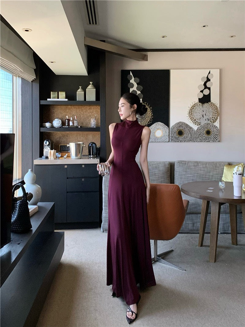 NA+ 高貴魔都 貴氣半高領美背連身裙 紫紅