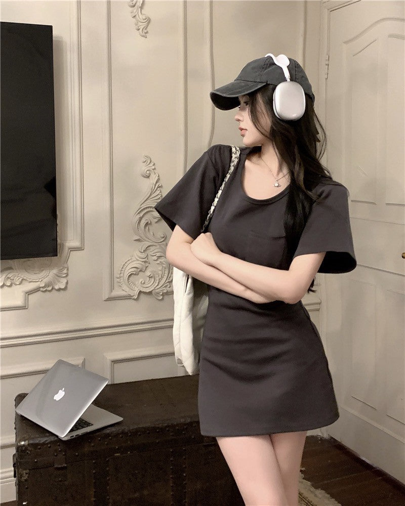 Na+ 鬆弛感收腰口袋T shirt裙 深灰