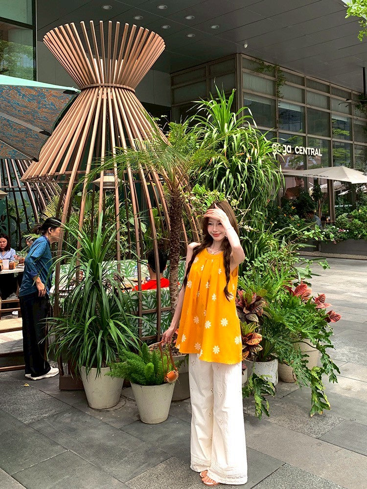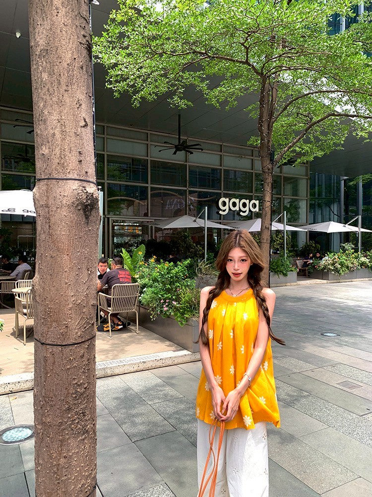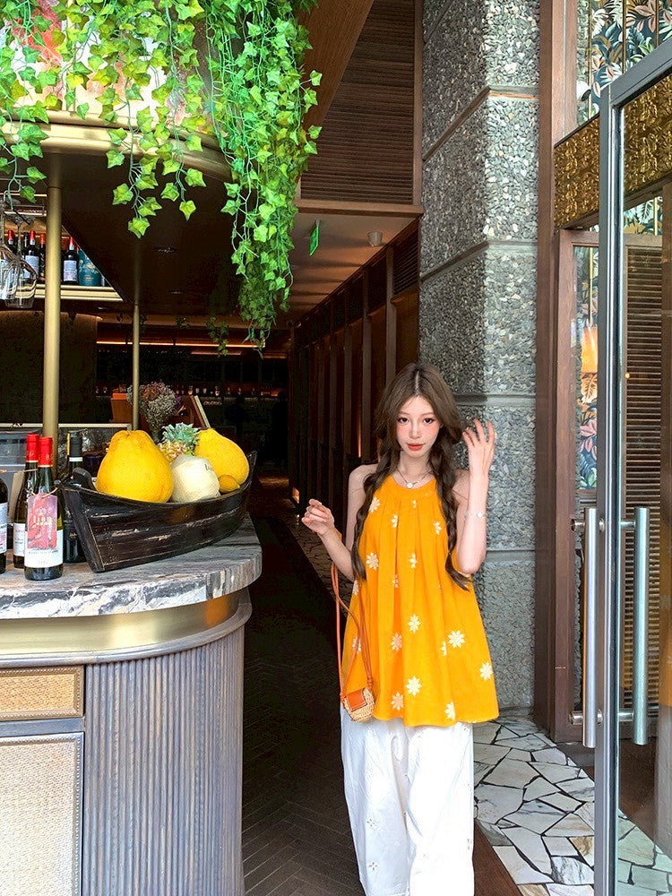 NA+ 黃油可麗露繡花料圓領背心上衣